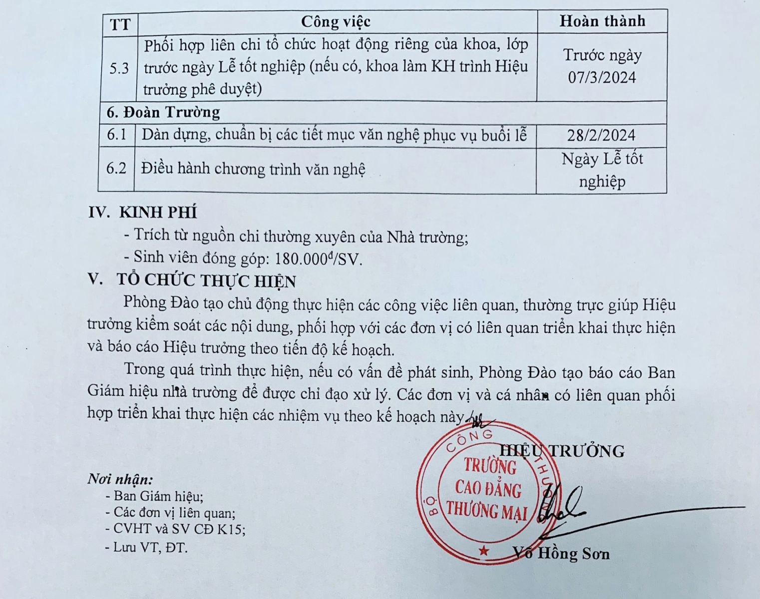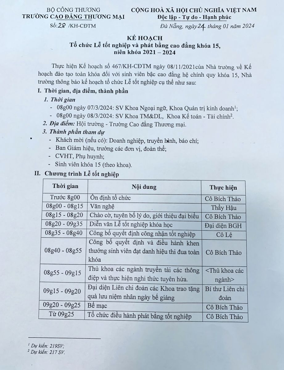 Thông báo tổ chức Lễ tốt nghiệp và phát bằng cao đẳng khóa 15