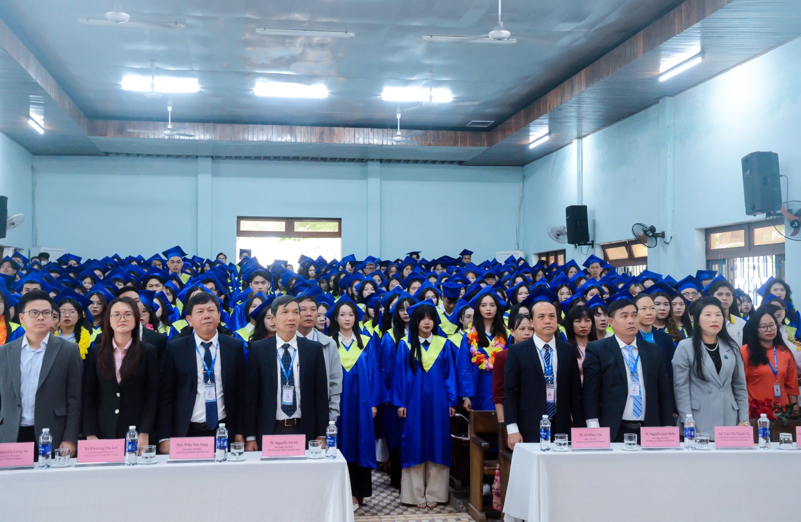 Dự buổi lễ có TS. Nguyễn Tri Vũ - Bí thư Đảng ủy, Chủ tịch Hội đồng trường; TS. Võ Hồng Sơn - Hiệu trưởng; ThS. Trần Văn Sang - Phó Hiệu trưởng, TS. Nguyễn Quý Nhẫn - Phó Hiệu trưởng cùng đại diện lãnh đạo các doanh nghiệp, các Phòng, Khoa, Trung tâm trong trường, gia đình, bạn bè của 352 Tân cử nhân.