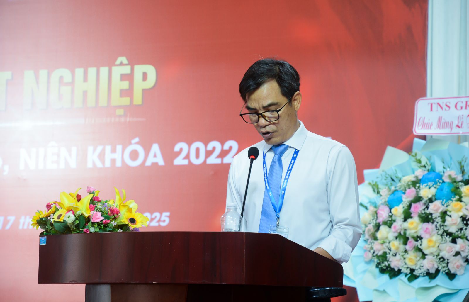 Thừa uỷ quyền của Hiệu trưởng, ThS. Lê Đức Doanh - Trưởng phòng Quản lý đào tạo công bố Quyết định công nhận tốt nghiệp cho 352 sinh viên khóa 16, niên khóa 2022 - 2025 và quyết định khen thưởng sinh viên xuất sắc và giỏi toàn khóa.