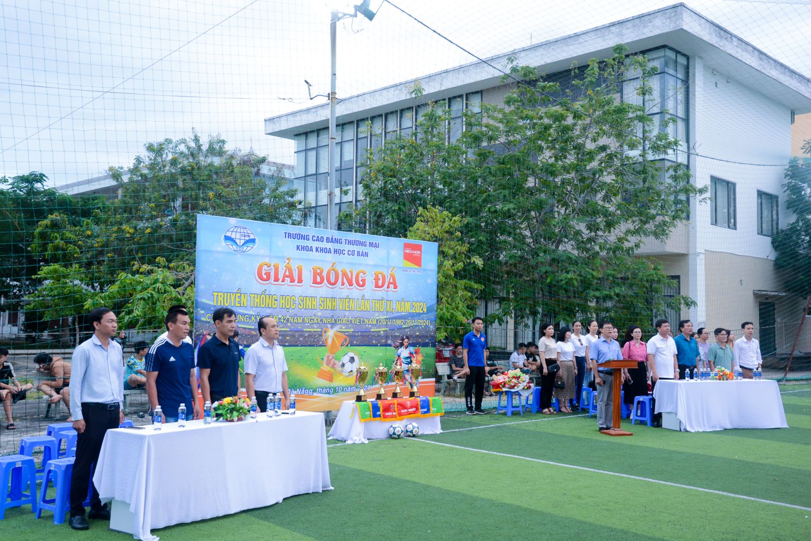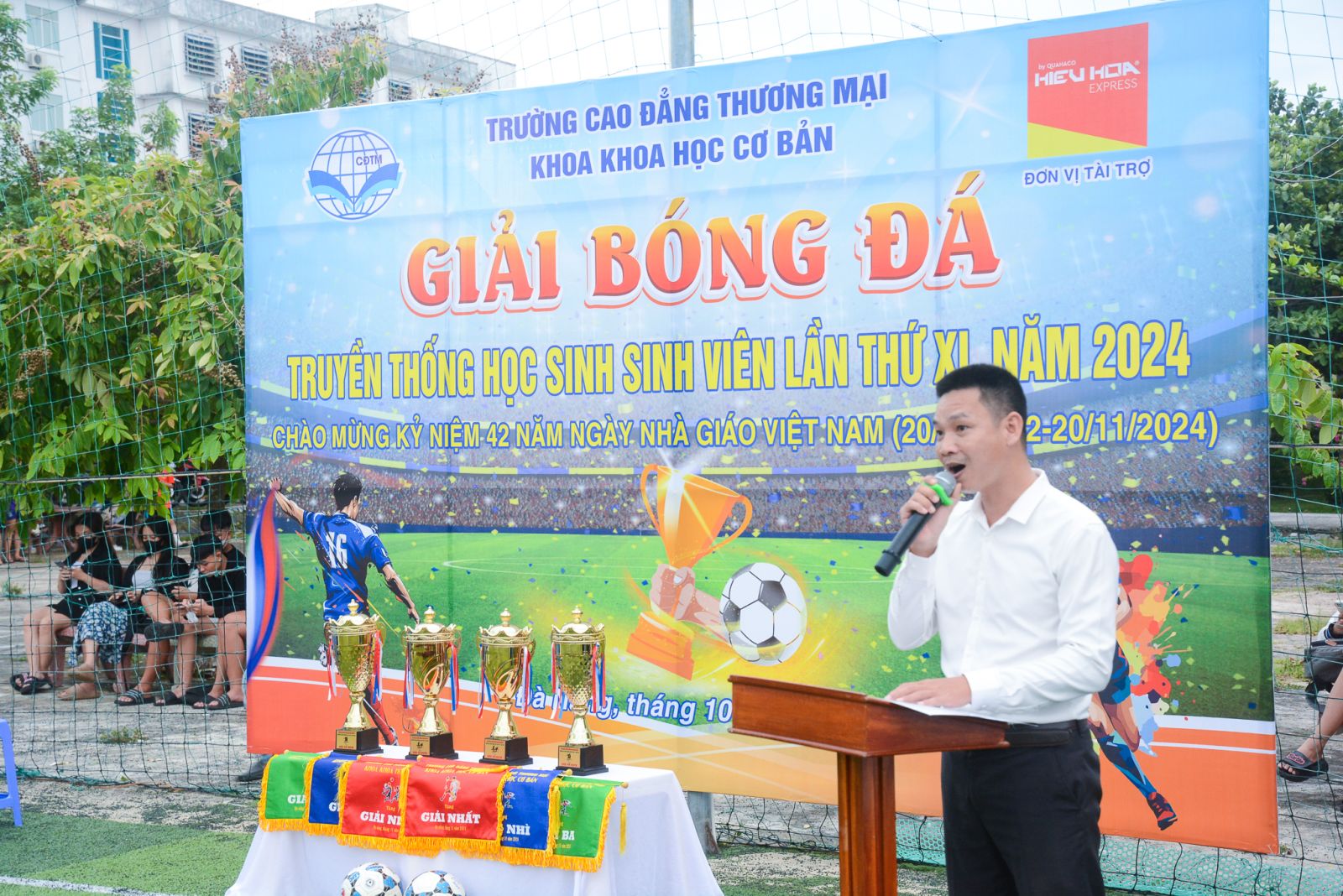 Phát biểu tại Lễ khai mạc, thầy Hồ Công Huân - Trưởng khoa Khoa học cơ bản, Trưởng Ban tổ chức giải cảm ơn nhà tài trợ trang phục Công ty TNHH Vận tải và Dịch vụ Du lịch Quảng Hà cùng sự quan tâm của Đảng ủy, Ban Giám hiệu, Đoàn thể, quý thầy cô giáo cùng toàn thể sinh viên Nhà trường đã tạo điều kiện tốt nhất để giải đấu được diễn ra theo kế hoạch. Thầy mong rằng gần 500 cầu thủ của 45 đội bóng sẽ thi đấu trên tinh thần cao thượng, trung thực và đoàn kết để cống hiến cho khán giả những pha bóng hay, những bàn thắng đẹp, thể hiện nét đẹp văn hóa của sinh viên Cao đẳng Thương mại để cùng nhau hướng tới chào mừng kỷ niệm 42 năm ngày Nhà giáo Việt Nam (20/11/1982 - 20/11/2024).