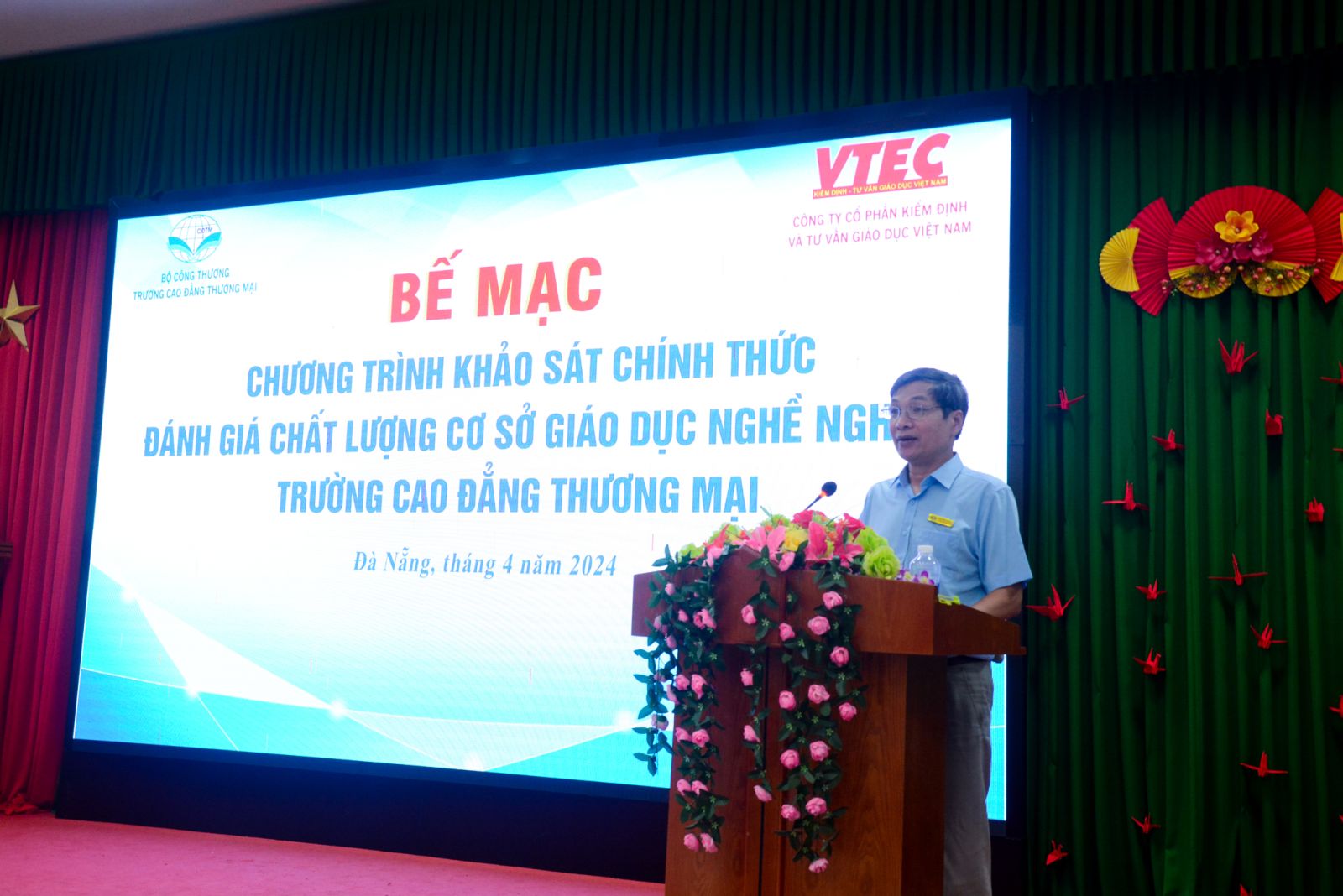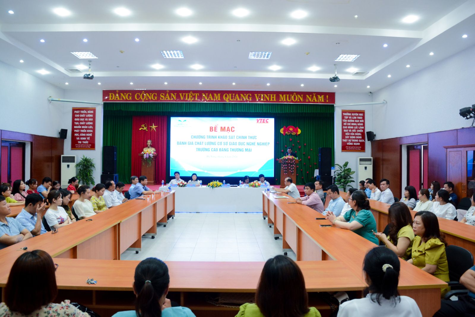 Sau 1 tuần làm việc tích cực và khẩn trương từ ngày 08/4 đến 14/4/2024, Trường Cao đẳng Thương mại phối hợp cùng Công ty Cổ phần Kiểm định và Tư vấn giáo dục Việt Nam (VTEC) tổ chức bế mạc chương trình khảo sát chính thức cơ sở giáo dục nghề nghiệp tại Trường Cao đẳng Thương mại.