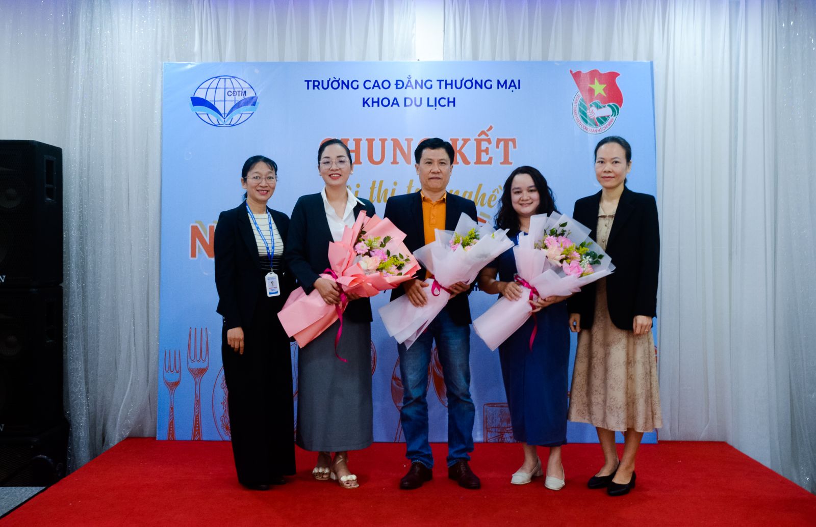 Tham gia vào ban giám khảo không chỉ có các thầy cô có chuyên môn cao ở trường mà còn có sự tham gia đánh giá của đại diện doanh nghiệp là bà Lê Thị Anh Thư - Senior Restaurant Manager của Sheraton Grand Danang Resort and Convention Center, là thành viên của Tập đoàn Marriott International - một trong những tập đoàn kinh doanh và quản lý khách sạn hàng đầu thế giới.