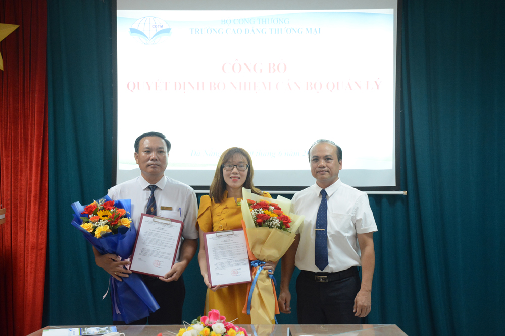 Tại buổi công bố quyết định này, Hiệu trưởng Trường Cao đẳng Thương mại quyết định bổ nhiệm có thời hạn ThS. Huỳnh Văn Bình - Trưởng Bộ môn Kế toán giữ chức vụ Phó Trưởng khoa Kế toán - Tài chính, Trưởng Bộ môn Kế toán; Cô Ngô Thị Ngọc Ánh - Phụ trách bộ môn Tiếng Anh cơ bản giữ chức vụ Trưởng Bộ môn Tiếng Anh cơ bản.