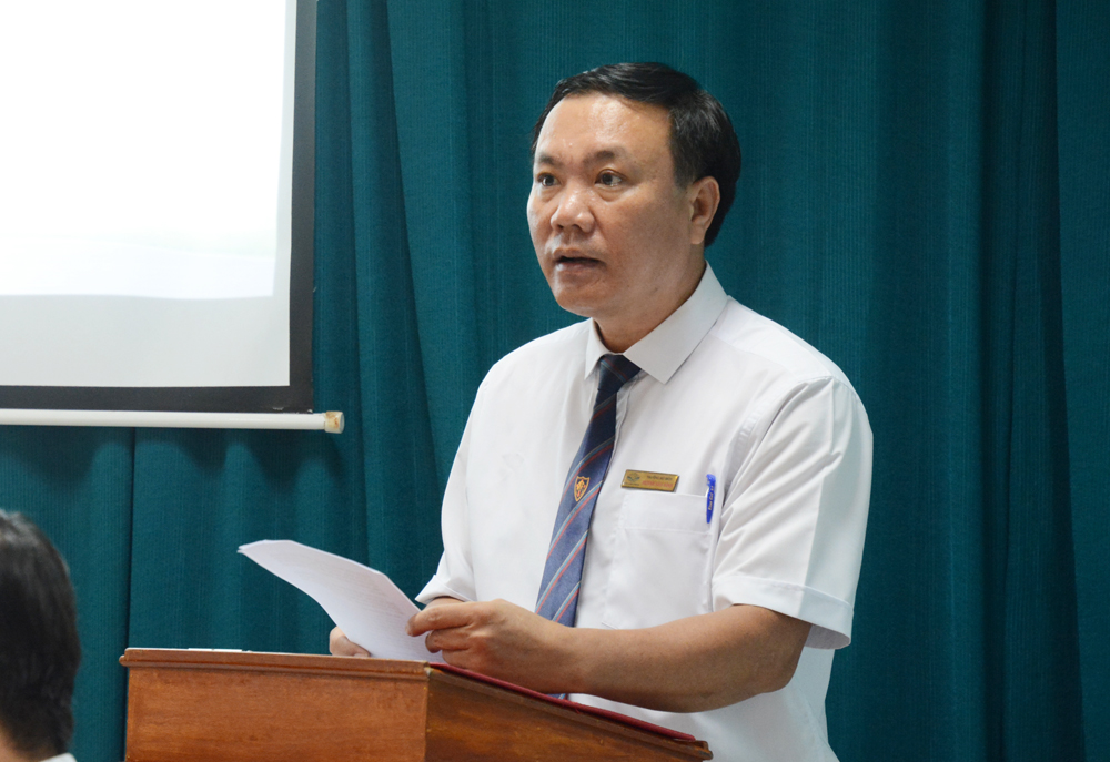 Phát biểu giao nhiệm vụ, TS. Võ Hồng Sơn - Hiệu trưởng chúc mừng các đồng chí được bổ nhiệm và mong rằng các đồng chí với kinh nghiệm thực tiễn sẽ phát huy hết năng lực, luôn nỗ lực để hoàn thành tốt nhiệm vụ mà Nhà trường đã tin tưởng và giao phó.