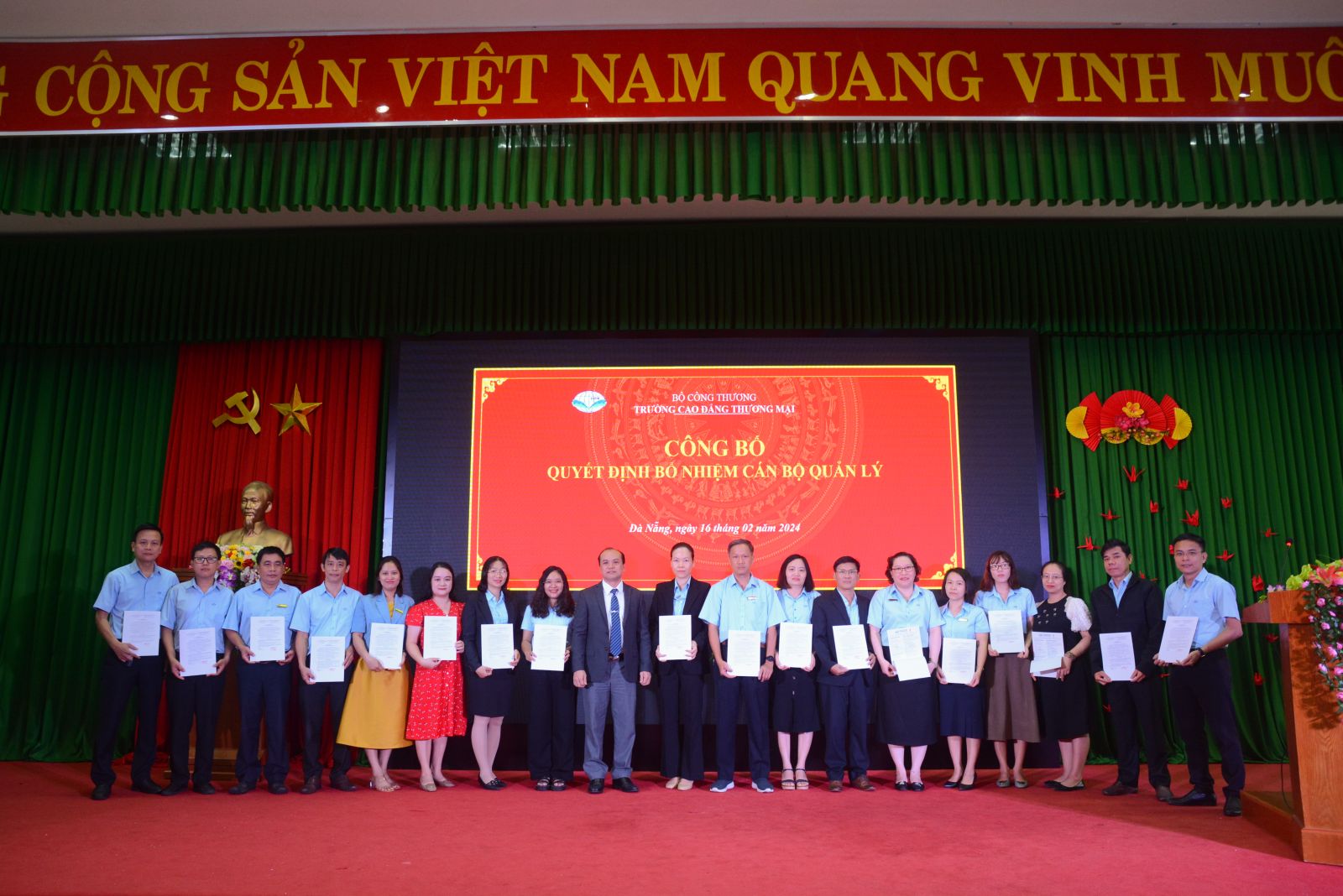 Tại buổi công bố quyết định này, Hiệu trưởng Trường Cao đẳng Thương mại quyết định thành lập phòng Quản lý đào tạo và bổ nhiệm TS. Bùi Thị Lệ giữ chức vụ Trưởng phòng Quản lý đào tạo; bổ nhiệm ThS. Trần Thị Thanh Tâm giữ chức vụ Phó Trưởng phòng Quản lý đào tạo; quyết định thành lập phòng Công tác học sinh sinh viên và giao cô Võ Thị Phương Anh giữ chức vụ Phó Trưởng phòng phụ trách phòng Công tác học sinh sinh viên; quyết định thành lập phòng Quản trị cơ sở vật chất và bổ nhiệm ThS. Hoàng Trung Dũng giữ chức vụ Trưởng phòng Quản trị cơ sở vật chất; quyết định thành lập phòng Quản lý khoa học và Đảm bảo chất lượng, giao TS. Nguyễn Quý Nhẫn - Phó Hiệu trưởng kiêm phụ trách phòng Quản lý khoa học và Đảm bảo chất lượng, bổ nhiệm ThS. Đặng Thị Tường Vy - giữ chức vụ Phó Trưởng phòng Quản lý khoa học và Đảm bảo chất lượng; bổ nhiệm TS. Đặng Xuân Trường giữ chức vụ Trưởng phòng Tổ chức hành chính, bổ nhiệm ThS. Nguyễn Mạnh Công giữ chức vụ Phó Trưởng phòng Tổ chức hành chính; quyết định thành lập Trung tâm Tuyển sinh và Đào tạo bồi dưỡng và bổ nhiệm ThS. Nguyễn Văn Hà giữ chức vụ Giám đốc Trung tâm Tuyển sinh và Đào tạo bồi dưỡng, bổ nhiệm ThS. Huỳnh Ngọc Tuấn giữ chức vụ Phó Giám đốc Trung tâm Tuyển sinh và Đào tạo bồi dưỡng; quyết định thành lập Trung tâm Công nghệ thông tin, Tư liệu, Thư viện và bổ nhiệm ThS. Lê Trần Thanh Hiếu giữ chức vụ Giám đốc Trung tâm Công nghệ thông tin, Tư liệu, Thư viện; quyết định thành lập khoa Quản trị kinh doanh và bổ nhiệm TS. Tống Phước Phong giữ chức vụ Trưởng khoa Quản trị kinh doanh, bổ nhiệm ThS. Hoàng Công Tuấn giữ chức vụ Phó Trưởng khoa Quản trị kinh doanh, bổ nhiệm ThS. Lê Thị Mỹ Dung giữ chức vụ Trưởng bộ môn Quản trị doanh nghiệp thuộc khoa Quản trị kinh doanh, bổ nhiệm ThS. Đặng Thị Thanh Tú giữ chức vụ Trưởng bộ môn Marketing thuộc khoa Quản trị kinh doanh, bổ nhiệm TS. Nguyễn Tiến Đà giữ chức vụ Trưởng bộ môn Kinh doanh thương mại thuộc khoa Quản trị kinh doanh; quyết định thành lập khoa Du lịch và giao ThS. Nguyễn Thị Thúy Quỳnh giữ chức vụ Phó Trưởng khoa phụ trách khoa Du lịch, bổ nhiệm ThS. Nguyễn Thị Oanh Kiều giữ chức vụ Phó Trưởng khoa Du lịch, bổ nhiệm ThS. Văn Thị Ngọc Bình giữ chức vụ Trưởng bộ môn Lữ hành - Hướng dẫn thuộc khoa Du lịch, bổ nhiệm ThS. Đỗ Thị Phương Thảo giữ chức vụ Trưởng bộ môn Khách sạn - Nhà hàng thuộc khoa Du lịch; quyết định đổi tên Bộ môn Tiếng anh cơ bản thuộc khoa Ngoại ngữ thành Bộ môn Ngoại ngữ cơ bản thuộc khoa Ngoại ngữ và bổ nhiệm cô Ngô Thị Ngọc Ánh giữ chức vụ Trưởng Bộ môn Ngoại ngữ cơ bản thuộc khoa Ngoại ngữ; ngoài ra nhà trường còn công bố các quyết định điều chuyển, thôi giữ chức vụ quản lý đối với viên chức.