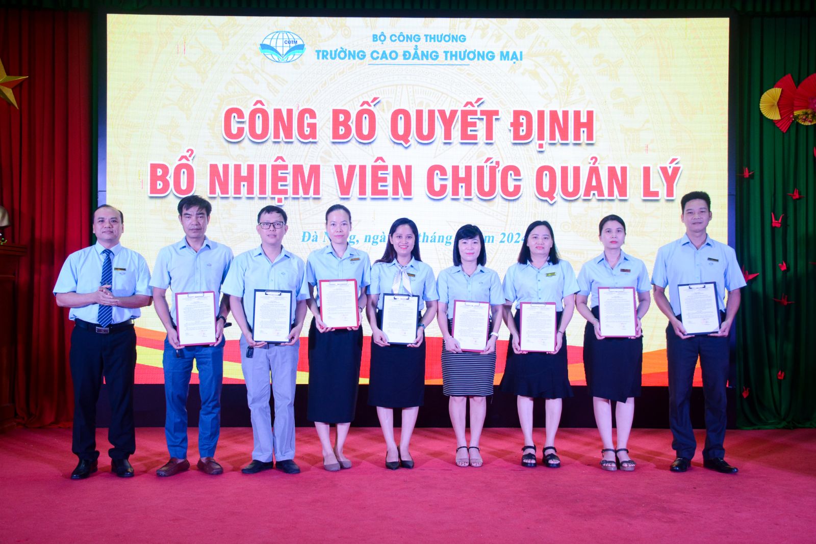 Tại buổi công bố quyết định này, Hiệu trưởng Trường Cao đẳng Thương mại quyết định bổ nhiệm có thời hạn ThS. Lê Đức Doanh - Trưởng khoa Khoa học cơ bản giữ chức Trưởng phòng Quản lý đào tạo; TS. Bùi Thị Lệ - Trưởng phòng Quản lý đào tạo giữ chức Trưởng khoa Kế toán - Tài chính; ThS. Nguyễn Thị Thúy Quỳnh - Phó Trưởng khoa phụ trách khoa Du lịch giữ chức Trưởng khoa Du lịch; ThS. Hồ Công Huân - Phó Trưởng khoa Khoa học cơ bản giữ chức Trưởng khoa Khoa học cơ bản; ThS. Đặng Thị Tưởng Vy - Phó Trưởng phòng Quản lý khoa học và Đảm bảo chất lượng giữ chức Trưởng phòng Quản lý khoa học và Đảm bảo chất lượng; ThS. Huỳnh Ngọc Tuấn - Phó Giám đốc Trung tâm Tuyển sinh và Đào tạo bồi dưỡng giữ chức Phó Trưởng khoa Khoa học cơ bản; ThS. Phùng Thị Thanh Vân - Giảng viên kiêm nhiệm Phòng Công tác học sinh, sinh viên giữ chức Phó Trưởng phòng Phòng Công tác học sinh, sinh viên. Ngoài ra, Hiệu trưởng Trường Cao đẳng Thương mại quyết định sáp nhập bộ môn Giáo dục thể chất vào bộ môn Tin học và đổi tên thành Bộ môn Văn hóa - Công nghệ - Giáo dục thể chất; Bổ nhiệm ThS. Đinh Phạm Thảo - Trưởng Bộ môn Tin học giữ chức vụ Trưởng Bộ môn Văn hóa - Công nghệ - Giáo dục thể chất.