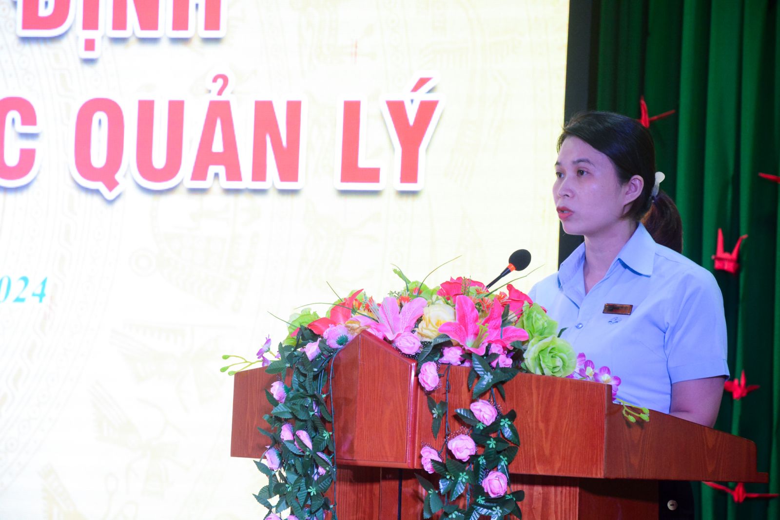 Thay mặt quý thầy cô được bổ nhiệm, phát biểu nhận nhiệm vụ ThS. Phùng Thị Thanh Vân - Phó Trưởng phòng Phòng Công tác học sinh, sinh viên đã gửi lời cảm ơn sâu sắc đến Đảng ủy, Ban Giám hiệu cùng quý thầy cô đã tin tưởng giao trọng trách cho mình cùng với đó là lời hứa quyết tâm hoàn thành tốt nhiệm vụ được giao để đóng góp vào chiến lược phát triển chung của Trường Cao đẳng Thương mại trong tình hình mới.