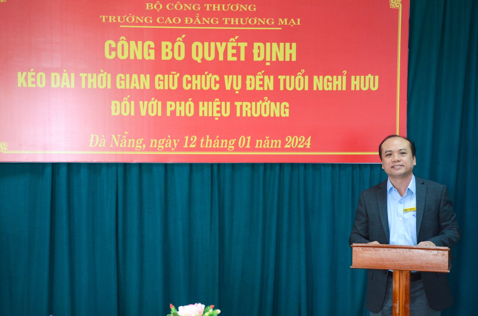 Sáng 12/01, tại Trường Cao đẳng Thương mại diễn ra lễ công bố quyết định của Bộ trưởng Bộ Công Thương về việc kéo dài thời gian giữ chức vụ đến tuổi nghỉ hưu đối với ThS. Trần Văn Sang - Phó Hiệu trưởng.