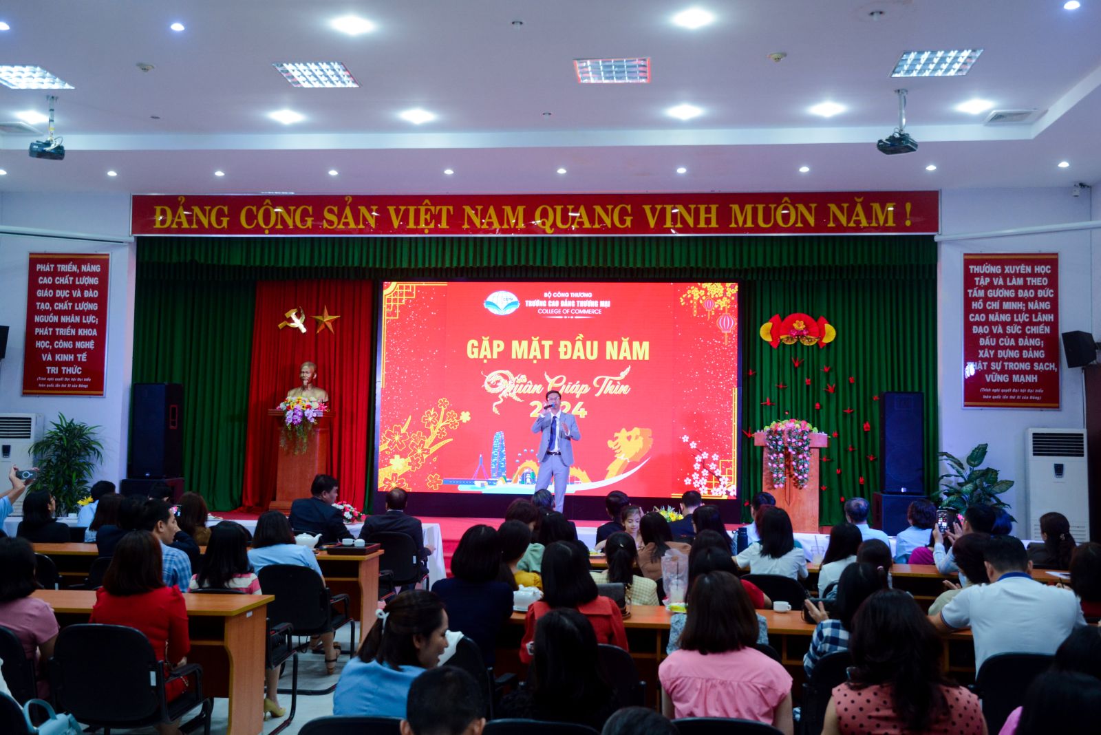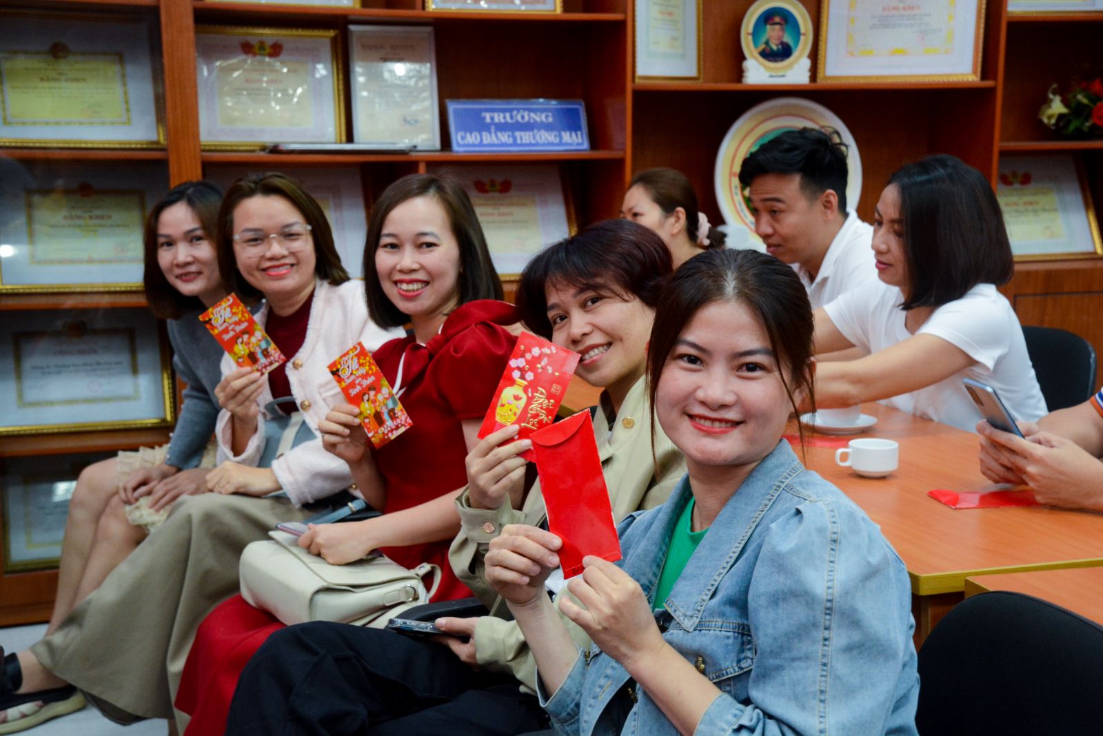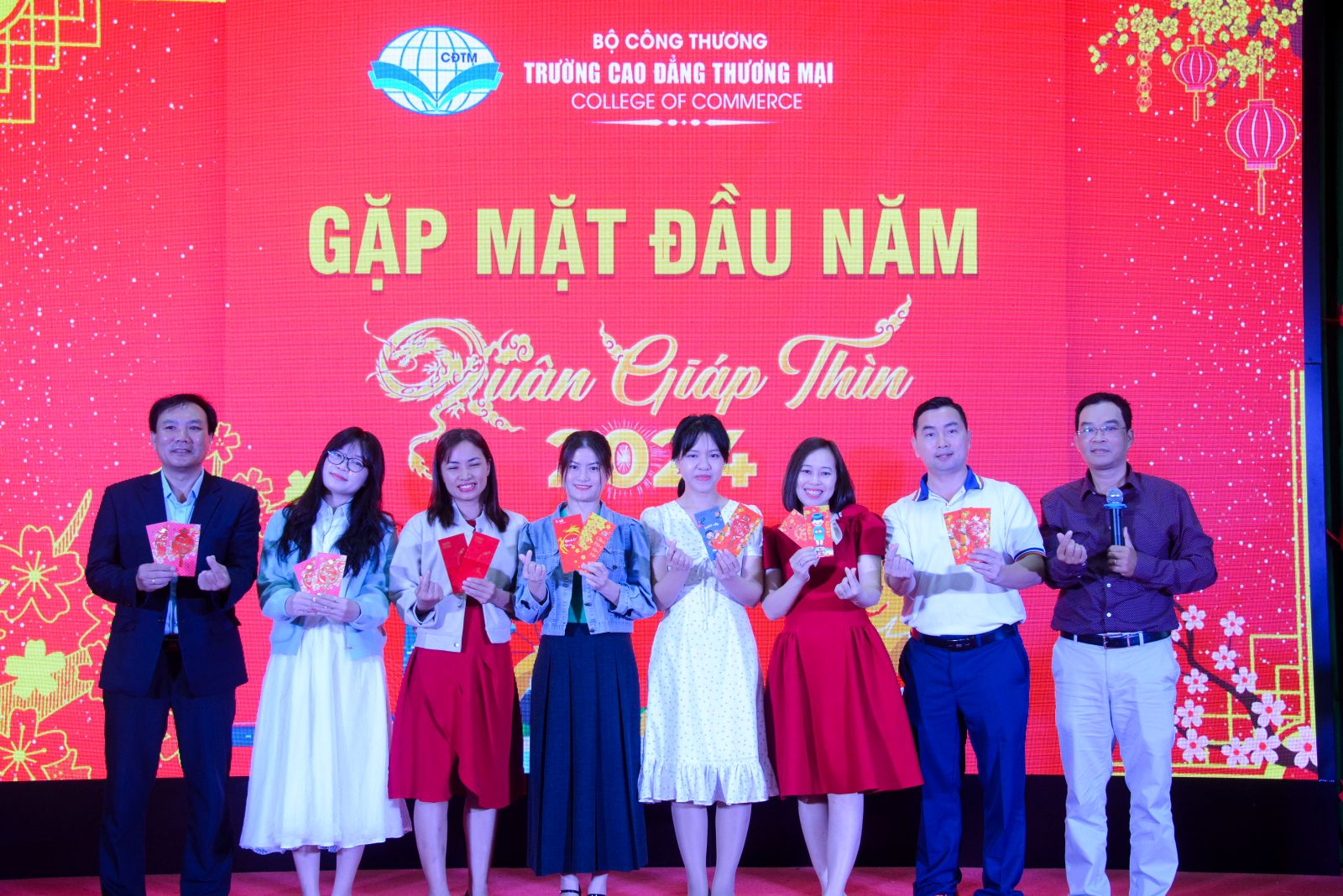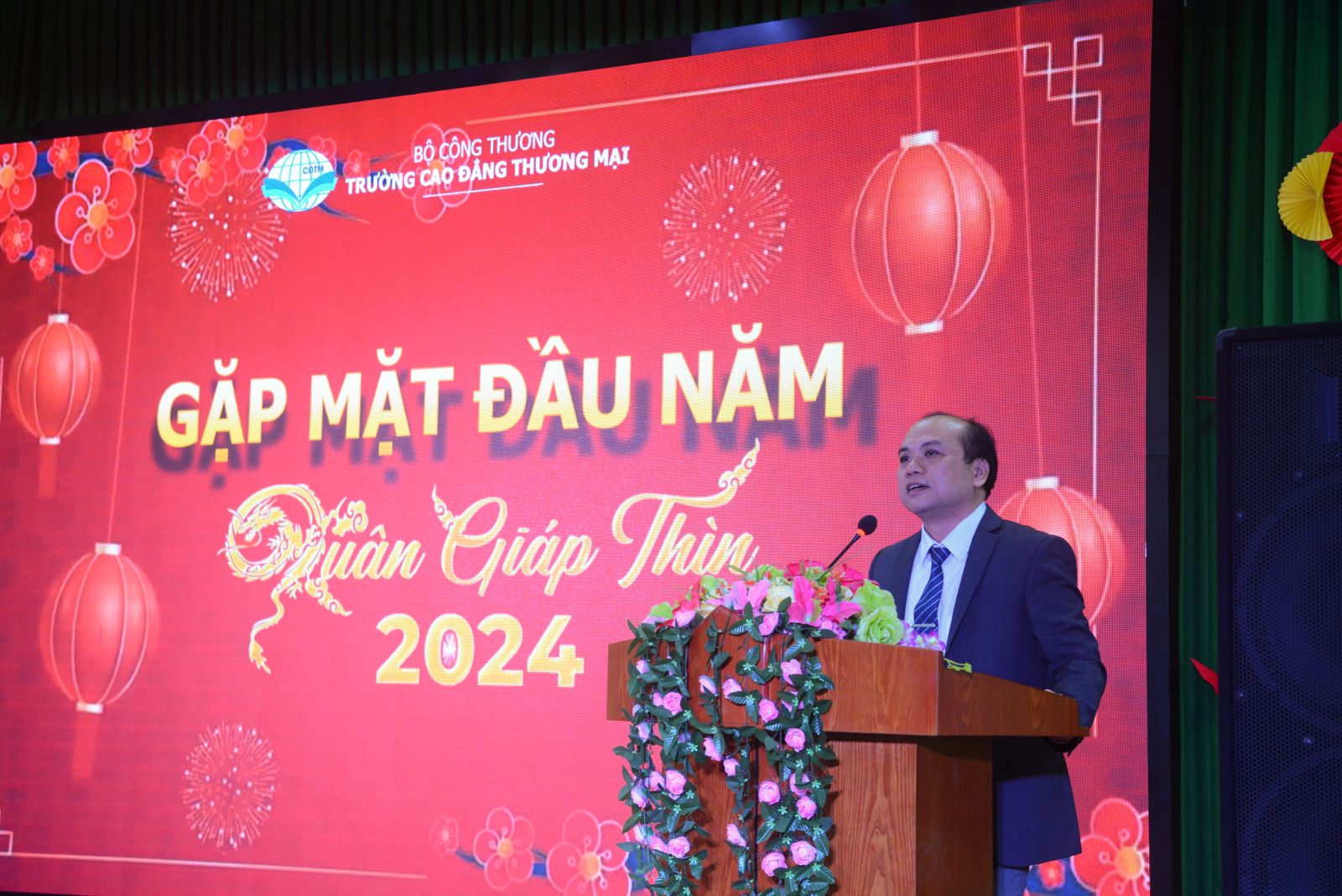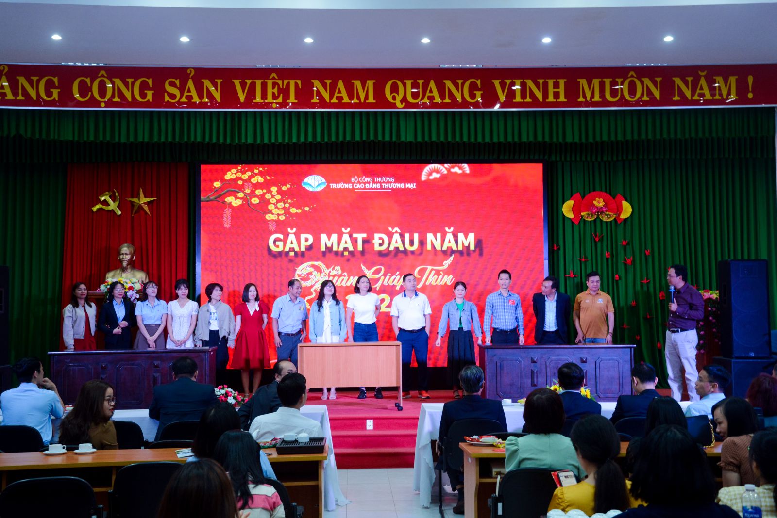 Trong không khí tưng bừng, phấn khởi mừng Đảng, mừng Xuân mới, sáng 16/02/2024 (tức ngày mùng 07 tháng Giêng năm Giáp Thìn), Trường Cao đẳng Thương mại tổ chức gặp mặt CBVC-NLĐ đầu năm Giáp Thìn 2024.
