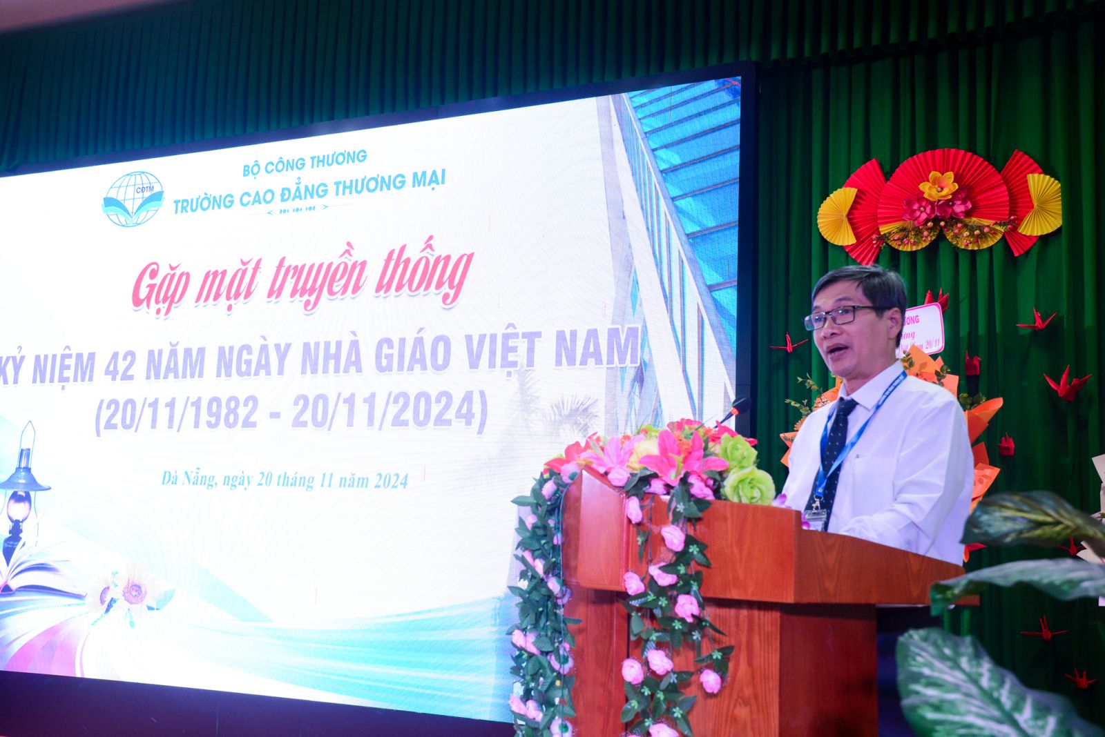 Phát biểu tại buổi gặp mặt, thay mặt lãnh đạo Nhà trường, TS. Võ Hồng Sơn - Hiệu trưởng biểu dương và gửi lời chúc tốt đẹp nhất đến toàn thể các thầy giáo, cô giáo đã cống hiến sức lực và trí tuệ cho sự nghiệp giáo dục đào tạo, sự nghiệp xây dựng và phát triển Trường Cao đẳng Thương mại. Mặc dù phía trước còn nhiều thách thức, nhưng lãnh đạo nhà trường luôn tin tưởng rằng, với tinh thần đoàn kết và ý chí quyết tâm, tập thể cán bộ, giáo viên Trường Cao đẳng Thương mại sẽ từng bước khắc phục khó khăn, tạo ra những đột phá, đưa con thuyền COC ngày càng vươn nhanh, vươn xa hơn nữa trong việc thực hiện sứ mệnh "trồng người" cao cả.