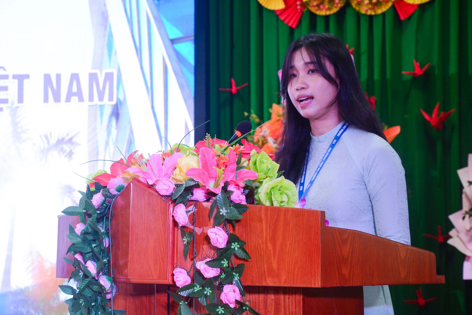 Trong không khí trang nghiêm ngày lễ Hiến Chương, sinh viên Bùi Hoài Bảo Trâm lớp 18TM7.1 thay mặt cho học sinh, sinh viên toàn trường đã gửi tới thầy cô giáo những lời tri ân sâu sắc và dâng tặng thầy cô lẵng hoa tươi thắm thể hiện tình yêu và lòng biết ơn của các thế hệ học sinh, sinh viên đối với sự nghiệp trồng người của các thầy cô giáo.