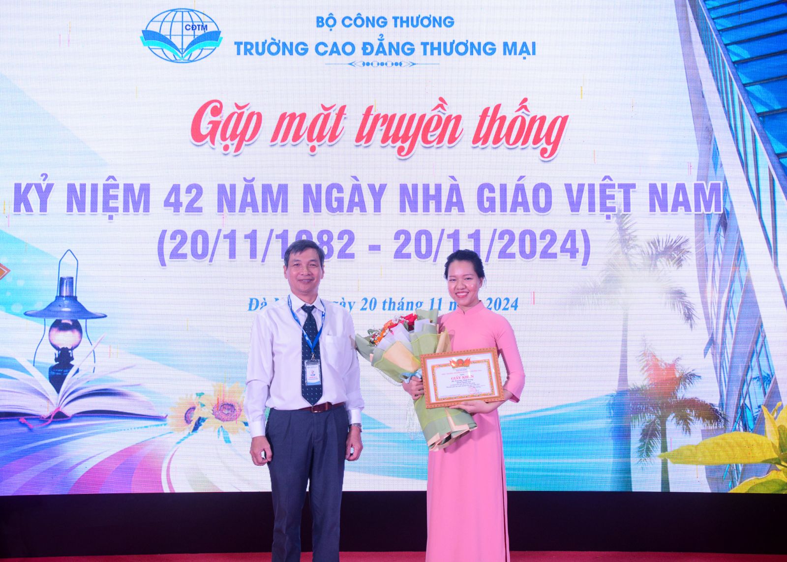 Nhân dịp này, Hiệu trưởng nhà trường đã có quyết định khen thưởng đột xuất nhằm ghi nhận và khích lệ tinh thần đối với cô Trương Nhật Hằng - Giảng viên khoa Ngoại ngữ đạt giải khuyến khích tại Hội giảng Nhà giáo giáo dục nghề nghiệp toàn quốc năm 2024 do Bộ Lao động - Thương binh và Xã hội tổ chức từ ngày 04 - 10/11/2024, tại tỉnh Quảng Ninh.
