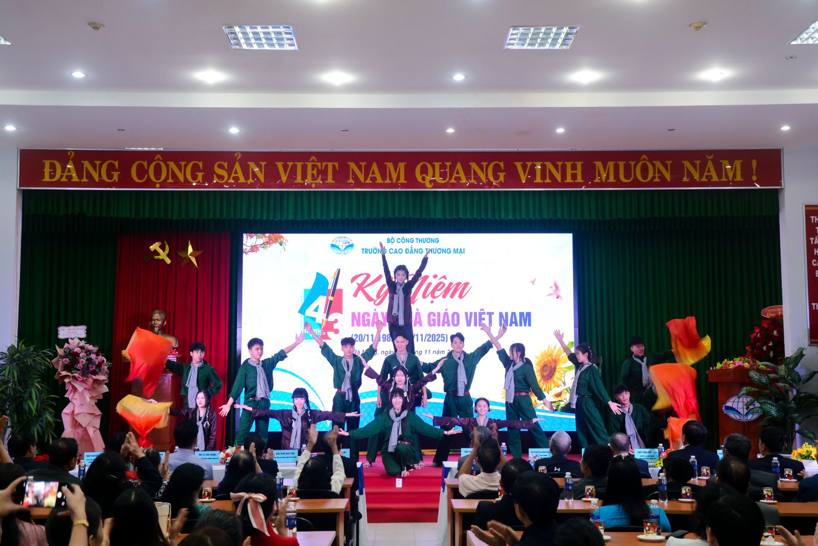 Sáng 20-11, Trường Cao đẳng Thương mại long trọng tổ chức gặp mặt truyền thống kỷ niệm 43 năm ngày Nhà giáo Việt Nam (20/11/1982 - 20/11/2025) nhằm tri ân những công lao, đóng góp to lớn của các thế hệ thầy giáo, cô giáo trong sự nghiệp trồng người.