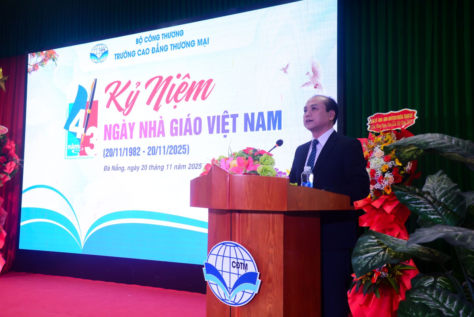 Trong diễn văn kỷ niệm, thay mặt lãnh đạo Nhà trường, TS. Võ Hồng Sơn - Bí thư Đảng, Hiệu trưởng biểu dương và gửi lời chúc tốt đẹp nhất đến toàn thể các thầy giáo, cô giáo đã cống hiến sức lực và trí tuệ cho sự nghiệp giáo dục đào tạo, sự nghiệp xây dựng và phát triển Trường Cao đẳng Thương mại. Mặc dù phía trước còn nhiều thách thức, nhưng lãnh đạo nhà trường luôn tin tưởng rằng, với tinh thần đoàn kết và ý chí quyết tâm, tập thể cán bộ, giáo viên Trường Cao đẳng Thương mại sẽ từng bước khắc phục khó khăn, tạo ra những đột phá, đưa con thuyền COC ngày càng vươn nhanh, vươn xa hơn nữa trong việc thực hiện sứ mệnh "trồng người" cao cả.