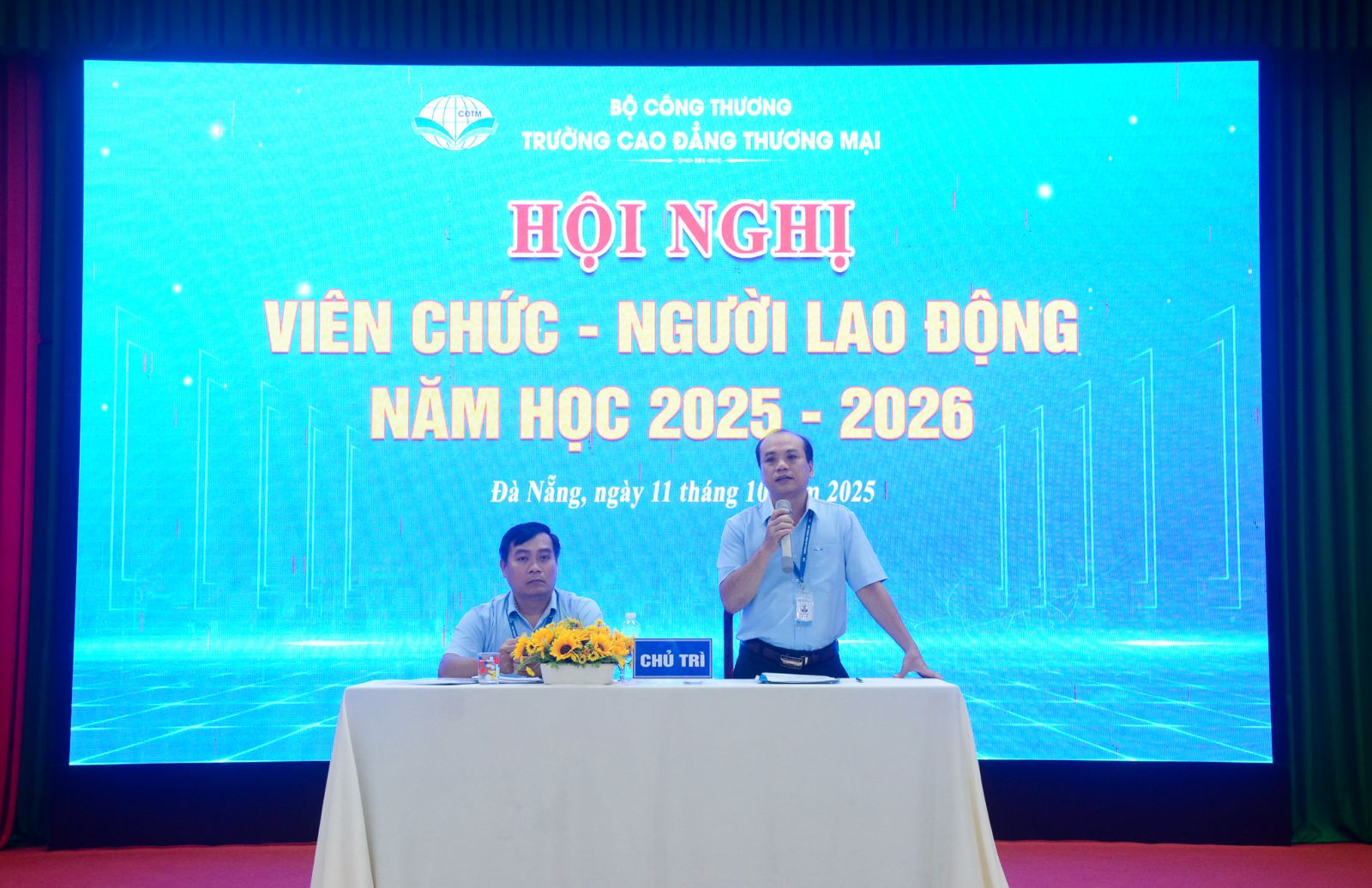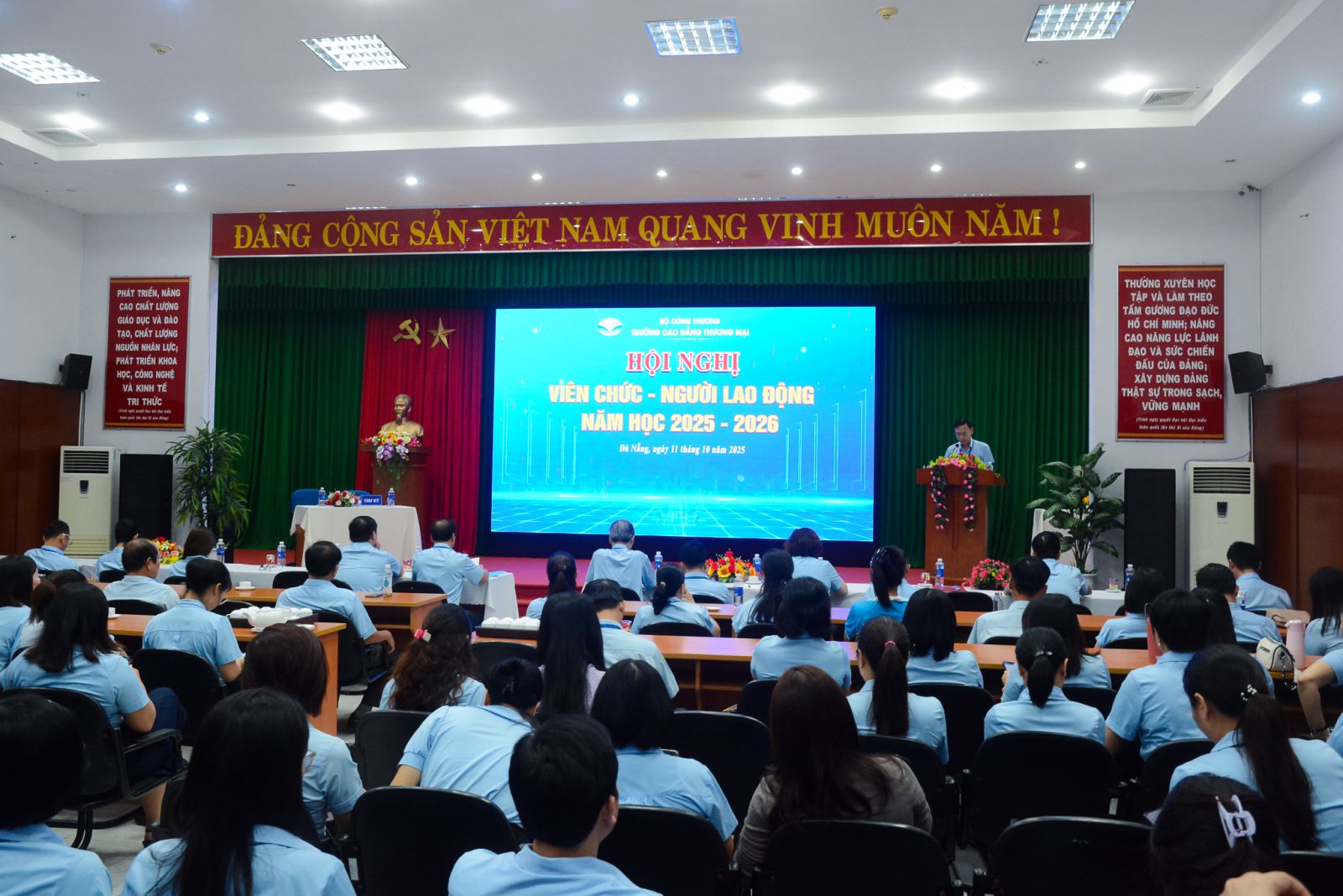Sáng ngày 11/10/2025, Trường Cao đẳng Thương mại đã tổ chức Hội nghị viên chức, người lao động năm học 2025 - 2026. Đây là dịp để toàn thể viên chức, người lao động cùng nhìn lại, đánh giá kết quả đã đạt được trong năm học 2024-2025; đồng thời thảo luận, thống nhất phương hướng, nhiệm vụ trọng tâm của năm học mới 2025-2026.