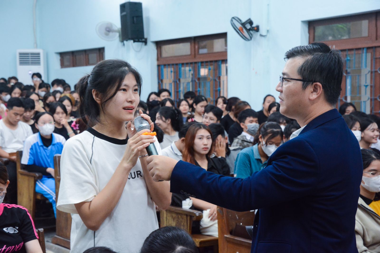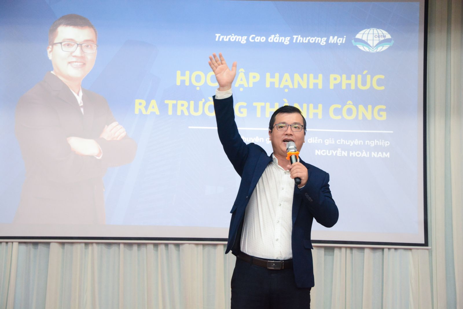 Tại talkshow, các bạn HSSV được diễn giả anh Nguyễn Hoài Nam - Giám đốc công ty Đào tạo Niềm tin Việt chia sẻ những bí quyết để có động lực học tập, sinh viên có nên làm thêm hay không? Tại sao học tập hạnh phúc lại quan trọng; mối liên hệ giữa Học tập hạnh phúc, ra trường thành công và 5 chữ vàng giúp HSSV học tập thành công... để từ đó giúp cho HSSV nâng cao nhận thức, định hướng cân bằng giữa việc học tập và đi làm thêm trong quá trình học tập dưới mái trường Cao đẳng Thương mại.