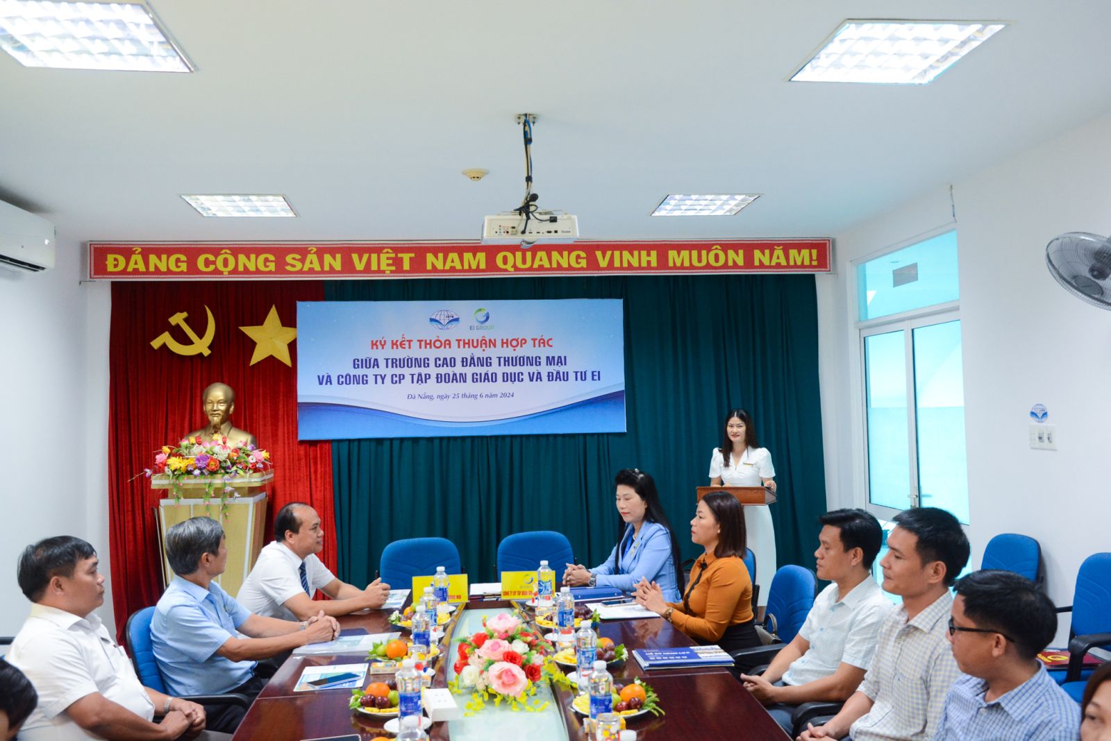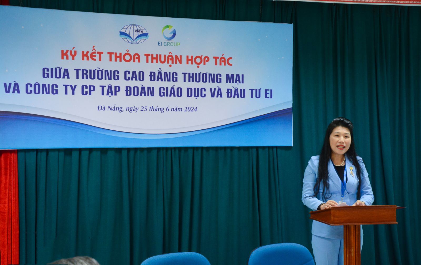 Bà Trần Thị Thanh Tú - Giám đốc đối ngoại tập đoàn EI GROUP cho biết: “Chúng tôi rất vinh dự khi được hợp tác đào tạo cùng Trường Cao đẳng Thương mại, tin tưởng hai đơn vị sẽ nhanh chóng thiết kế những chương trình cụ thể, đa dạng và phù hợp giữa Nhà trường và Doanh nghiệp nhằm tạo điều kiện cho học viên tiếp cận công việc, tiếp cận văn hóa tại các nước có nền kinh tế phát triển như Đức, Úc, Canada, Anh, Mỹ, Nhật Bản tốt nhất”.