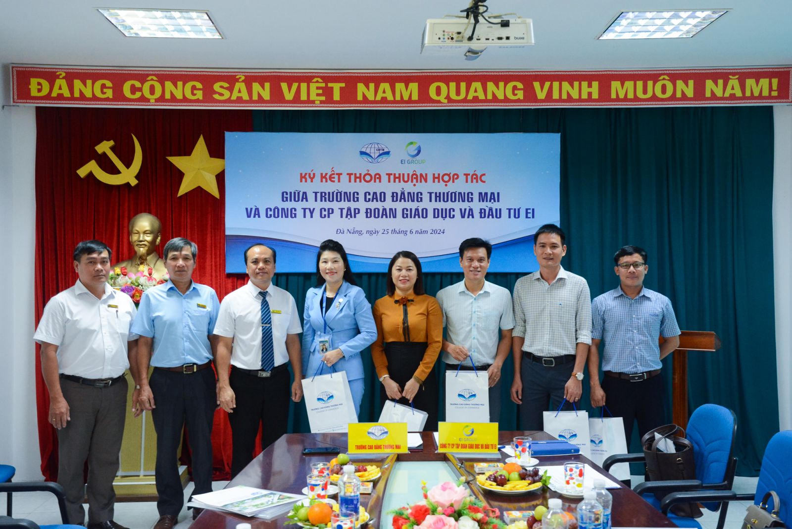 Buổi ký kết hợp tác có sự tham dự của bà Trần Thị Thanh Tú - Giám đốc đối ngoại EI GROUP cùng các ông/bà trưởng các phòng chức năng EI GROUP; TS. Võ Hồng Sơn - Hiệu trưởng; TS. Nguyễn Tri Vũ - Phó Hiệu trưởng; TS. Nguyễn Quý Nhẫn - Phó Hiệu trưởng; cùng trưởng các đơn vị Trường Cao đẳng Thương mại.