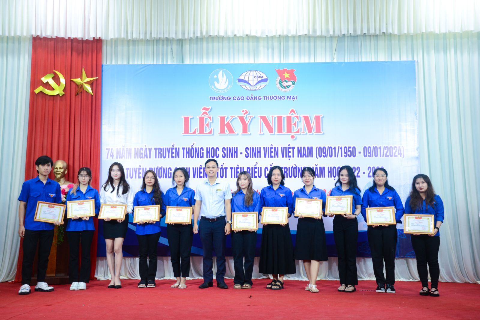 Bên cạnh đó, thực hiện truyền thống cao đẹp, tương thân, tương ái, lá lành đùm lá rách của dân tộc Việt Nam nói chung và đoàn viên thanh niên Trường Cao đẳng Thương mại nói riêng; Đoàn thanh niên - Hội sinh viên nhà trường đã phát động phong trào “Hỗ trợ vé xe cho những sinh viên đang theo học tại trường có hoàn cảnh gia đình khó khăn về quê đón tết Giáp Thìn 2024”. Tại buổi lễ kỷ niệm, Ban tổ chức đã trao tặng vé xe tổng trị giá 15.000.000đ cho sinh viên ở xa có hoàn cảnh khó khăn của Nhà trường.