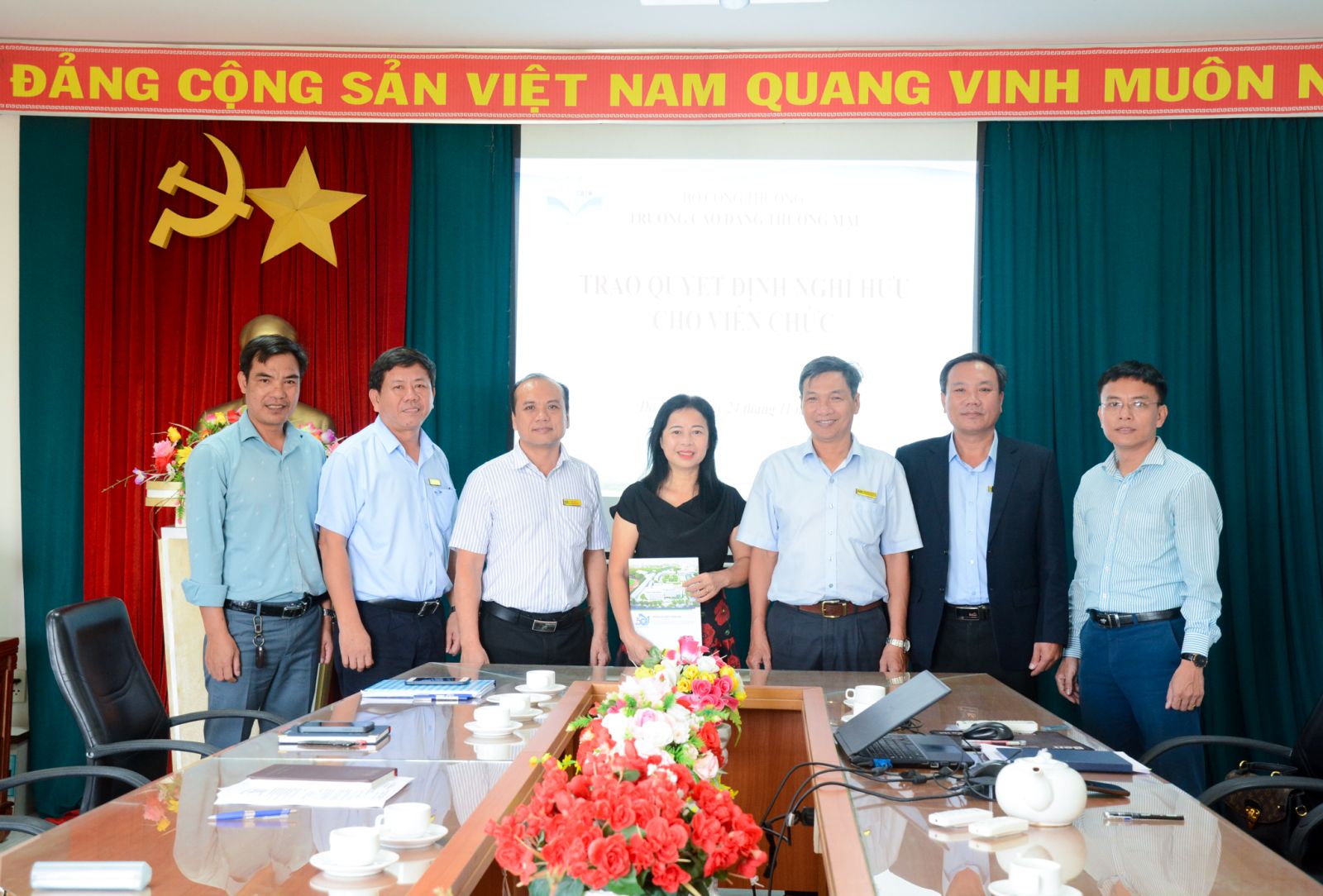 Ngày 24/11, Trường Cao đẳng Thương mại tổ chức gặp mặt và trao Quyết định về việc nghỉ hưu cho cô Nguyễn Thị Huyền - Giảng viên khoa Kế toán - Tài chính, viên chức nghỉ hưu từ ngày 01/12/2023.