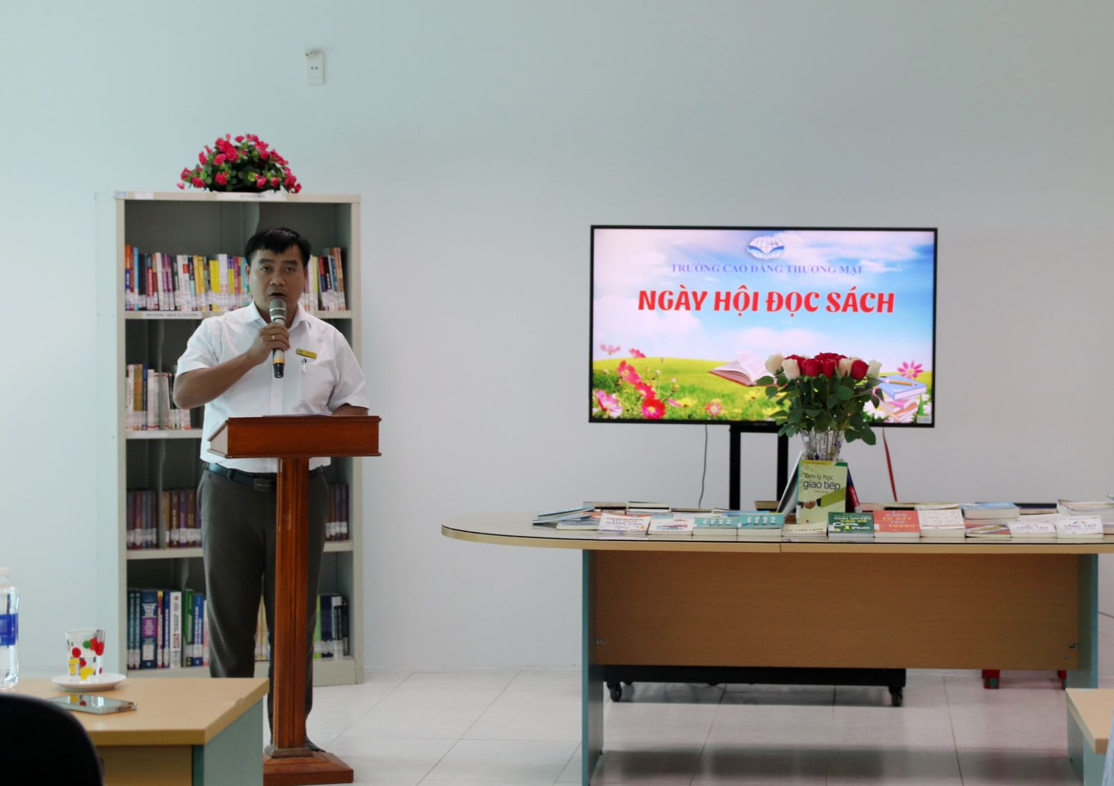 Phát biểu khai mạc “Ngày hội đọc sách” năm 2024, TS. Nguyễn Quý Nhẫn - Phó Hiệu trưởng cho biết trong đời sống tinh thần của mỗi chúng ta, sách đóng vai trò rất quan trọng: Sách là chiếc chìa khoá vạn năng mở cửa lâu đài trí tuệ và tâm hồn con người; Sách là kho tàng tri thức quan trọng đối với tất cả mọi người. Ngày hội đọc sách năm 2024 được tổ chức tại Trường Cao đẳng Thương mại nhằm khơi dậy niềm đam mê đọc sách của cán bộ giảng viên và sinh viên ở mọi lứa tuổi.
