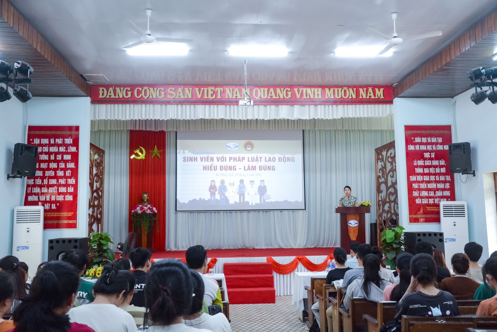 Nhằm trang bị kiến thức tổng quan về Pháp luật Lao động, những điểm mới trong vấn đề tuyển dụng, sử dụng lao động trong các doanh nghiệp cho sinh viên, Trường Cao đẳng Thương mại phối hợp với Sở LĐTB&XH thành phố Đà Nẵng tổ chức talkshow “Sinh viên với Pháp luật Lao động, hiểu đúng - làm đúng”.