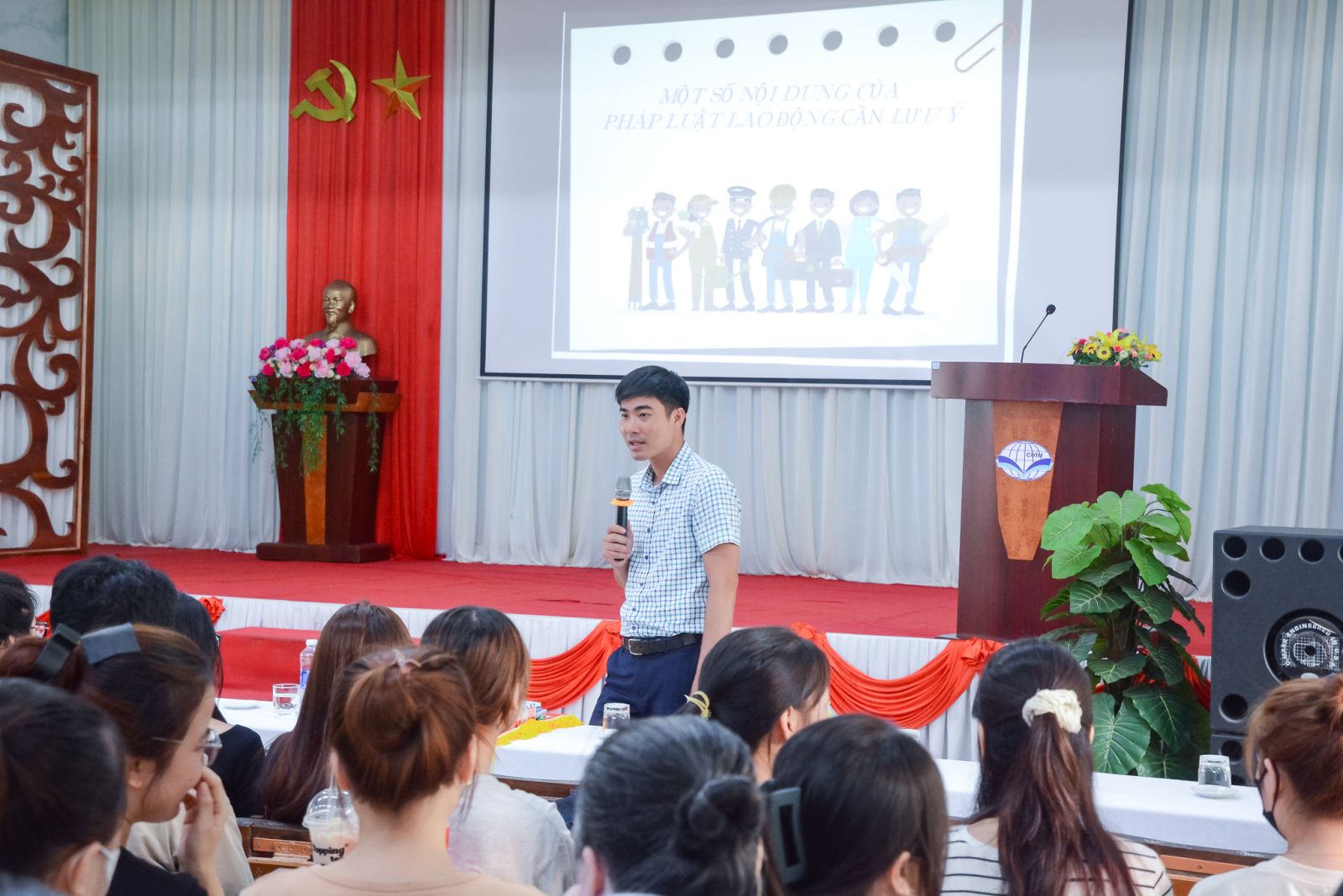 Chương trình có sự tham dự của anh Nguyễn Thành Vinh - Phó phòng chính sách - Sở LĐTB&XH cũng là diễn giả của chương trình; cô Võ Thị Phương Anh - Phó Trưởng phòng phụ trách phòng Công tác HSSV cùng đông đảo các bạn sinh viên năm cuối của Nhà trường.