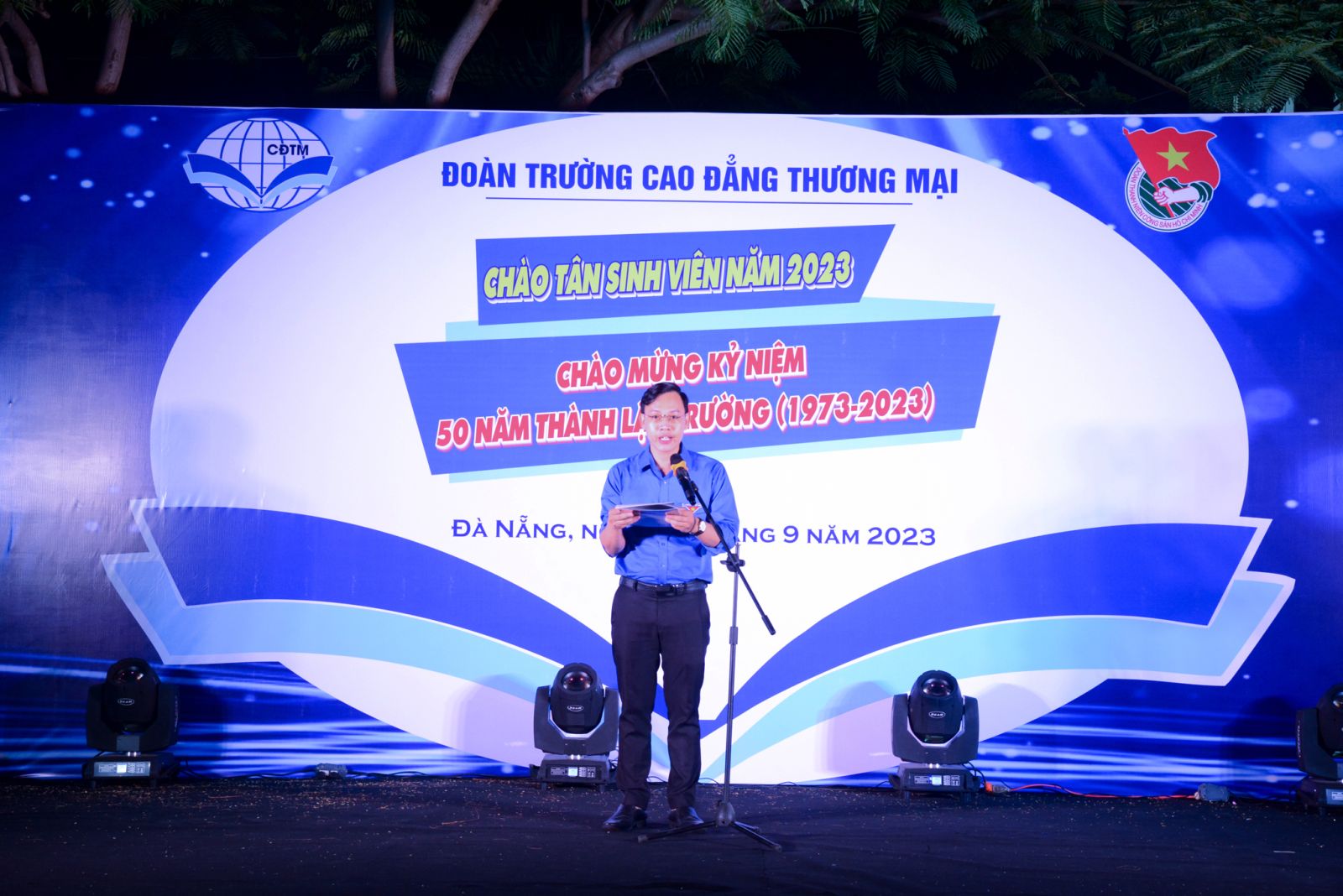 Phát biểu khai mạc, đồng chí Phan Đức Hậu - Ủy viên BCH Thành đoàn, Bí thư Đoàn trường gửi lời chào nồng nhiệt đến các bạn Tân sinh viên khóa 17. Đồng chí mong rằng sau chương trình đặc biệt hôm nay các bạn sẽ có những kỷ niệm đáng nhớ nhất về Trường Cao đẳng Thương mại, Đoàn trường sẽ luôn hỗ trợ và đồng cùng K17 trên chặng đường học tập, rèn luyện dưới mái trường Thương mại thân yêu!