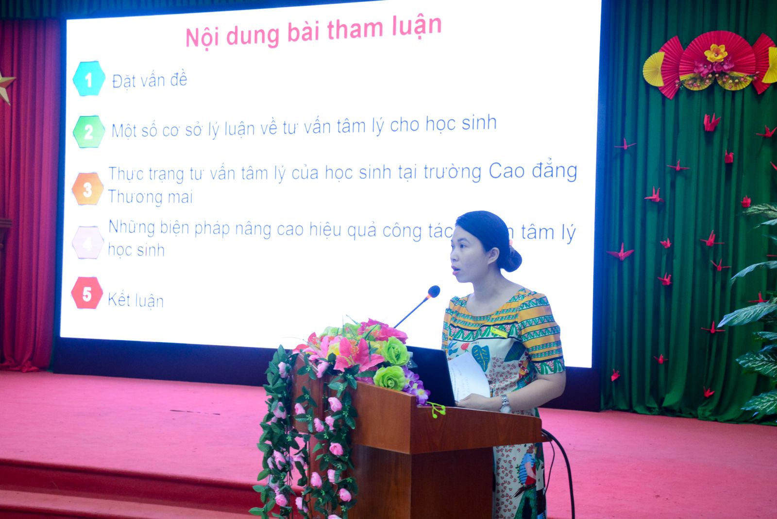 Tại buổi tọa đàm có 3 bài tham luận được trình bày trong tổng số 16 bài viết gửi về cho Ban tổ chức và nhiều ý kiến trao đổi thông tin, chia sẻ kinh nghiệm công tác quản lý, giáo dục học sinh trung cấp (hệ 9+) trong bối cảnh hiện nay. Thông qua các tham luận và ý kiến chia sẻ tại buổi tọa đàm đã góp phần chỉ rõ những khó khăn và các giải pháp quản lý, giáo dục, cập nhật những xu hướng mới nhất trong giáo dục nghề nghiệp như: Thực trạng tâm lý học tập và hành vi của học sinh trung cấp (hệ 9+) hiện nay, giải pháp khắc phục; đặc điểm tâm lý của học sinh trung cấp (hệ 9+); những phương pháp tạo động cơ, hứng thú học tập hiệu quả cho học sinh trung cấp (hệ 9+)…