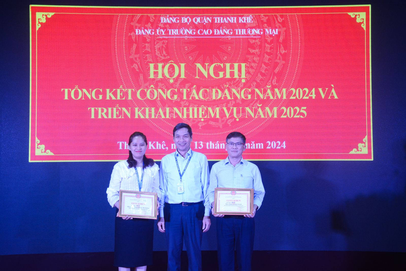 Nhân dịp này, Ban thường vụ Đảng bộ Trường Cao đẳng Thương mại đã biểu dương, khen thưởng các tập thể đạt danh hiệu chi bộ hoàn thành xuất sắc nhiệm vụ và cá nhân đạt danh hiệu đảng viên hoàn thành xuất sắc nhiệm vụ trong năm 2024.