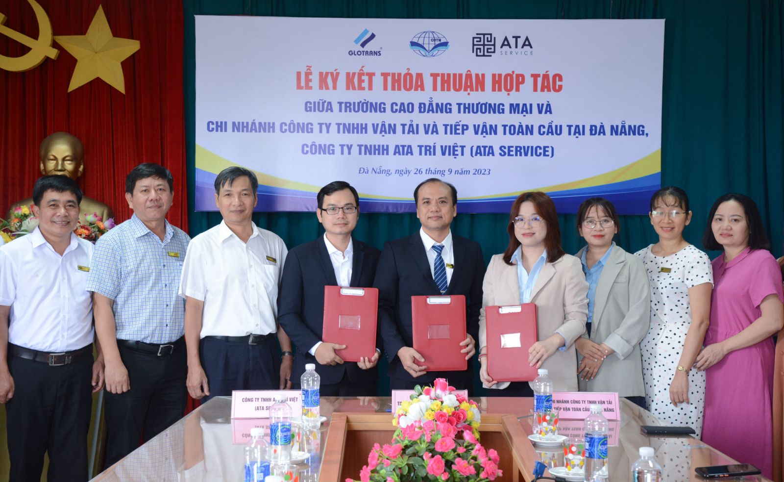 Sáng 26/9, Trường Cao đẳng Thương mại ký Thỏa thuận hợp tác với Chi nhánh Công ty TNHH Vận tải và Tiếp vận Toàn Cầu tại Đà Nẵng và Công ty TNHH ATA Trí Việt nhằm hỗ trợ thực tập, tuyển dụng, đào tạo và phối hợp tổ chức các hoạt động hỗ trợ sinh viên.