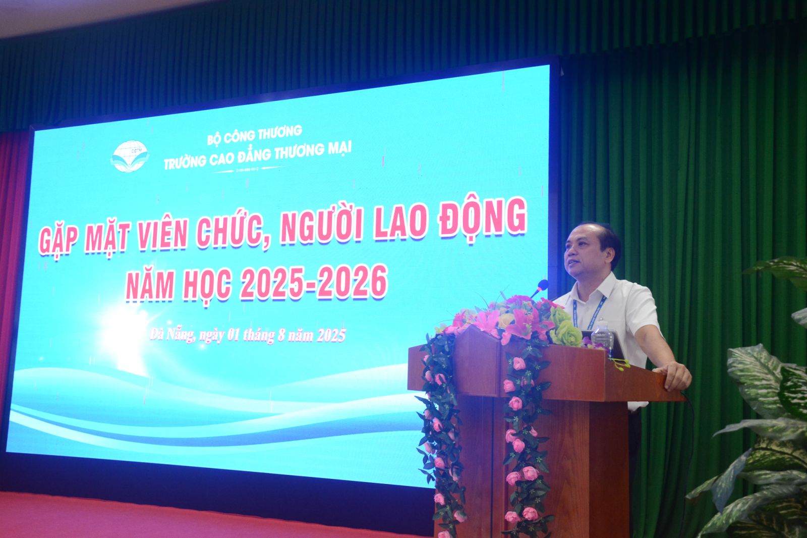 Phát biểu tại buổi gặp mặt, TS. Võ Hồng Sơn - Bí thư Đảng ủy, Hiệu trưởng Nhà trường đã điểm lại những thành tích nổi bật của Trường Cao đẳng Thương mại trong năm học 2024-2025 và đề ra phương hướng nhiệu vụ của nhà trường trong năm học 2025-2026. Nhân dịp gặp mặt đầu năm học mới, Hiệu trưởng gửi lời chúc tốt đẹp nhất đến các thầy giáo, cô giáo, cán bộ viên chức và người lao động sức khỏe dồi dào, hạnh phúc đạt nhiều thành tích trong công tác và học tập.
