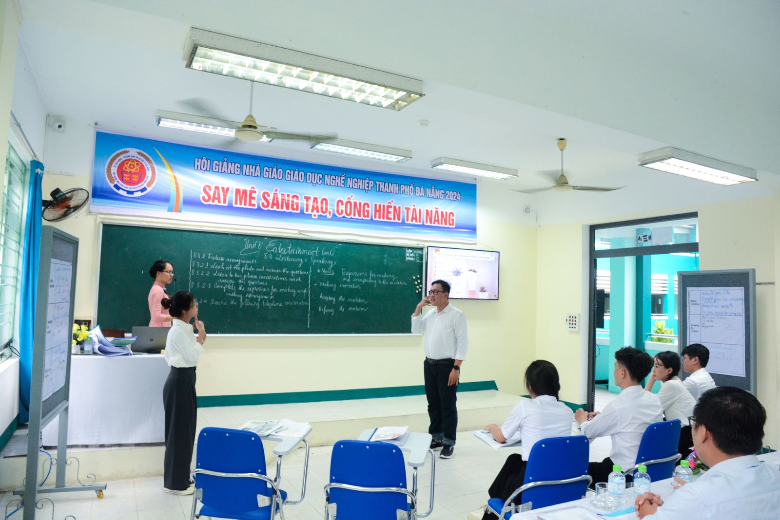Hội giảng "Nhà giáo giáo dục nghề nghiệp thành năm 2024" diễn ra từ ngày 10 đến ngày 13-9-2024, có 42 nhà giáo đến từ 10 trường cao đẳng trên địa bàn thành phố dự thi. Các nhà giáo đem đến hội giảng 42 bài giảng, gồm: 4 bài giảng lý thuyết, 1 bài giảng thực hành và 37 bài giảng tích hợp ở 4 nhóm ngành, nghề khác nhau: công nghệ kỹ thuật, máy tính và công nghệ thông tin; du lịch, khách sạn, thể thao và dịch vụ cá nhân; nhân văn, sức khỏe; nghệ thuật, kinh doanh và quản lý. Cô Trương Nhật Hằng - Giảng viên khoa Ngoại ngữ và cô Nguyễn Thị Ánh Ly - Giảng viên khoa Du lịch đại diện đội ngũ nhà giáo của Trường Cao đẳng Thương mại dự thi.