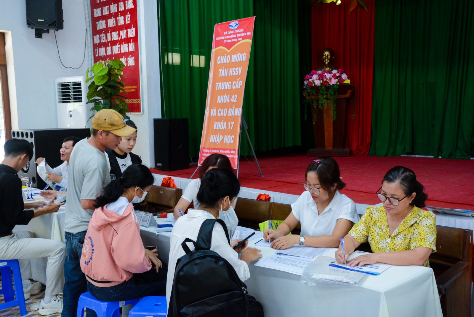 Quy trình nhập học tiếp tục được thực hiện theo mô hình 1 cửa vừa nộp hồ sơ vừa thu lệ phí qua đó giúp các Tân HSSV làm thủ tục một cách nhanh chóng. Tại các buổi tiếp đón, Đoàn trường đã bố trí các bạn tình nguyện viên để hướng dẫn thủ tục nhập học, đăng ký ở ký túc xá và giới thiệu các điểm thuê nhà trọ gần trường với giá cả hợp lý.