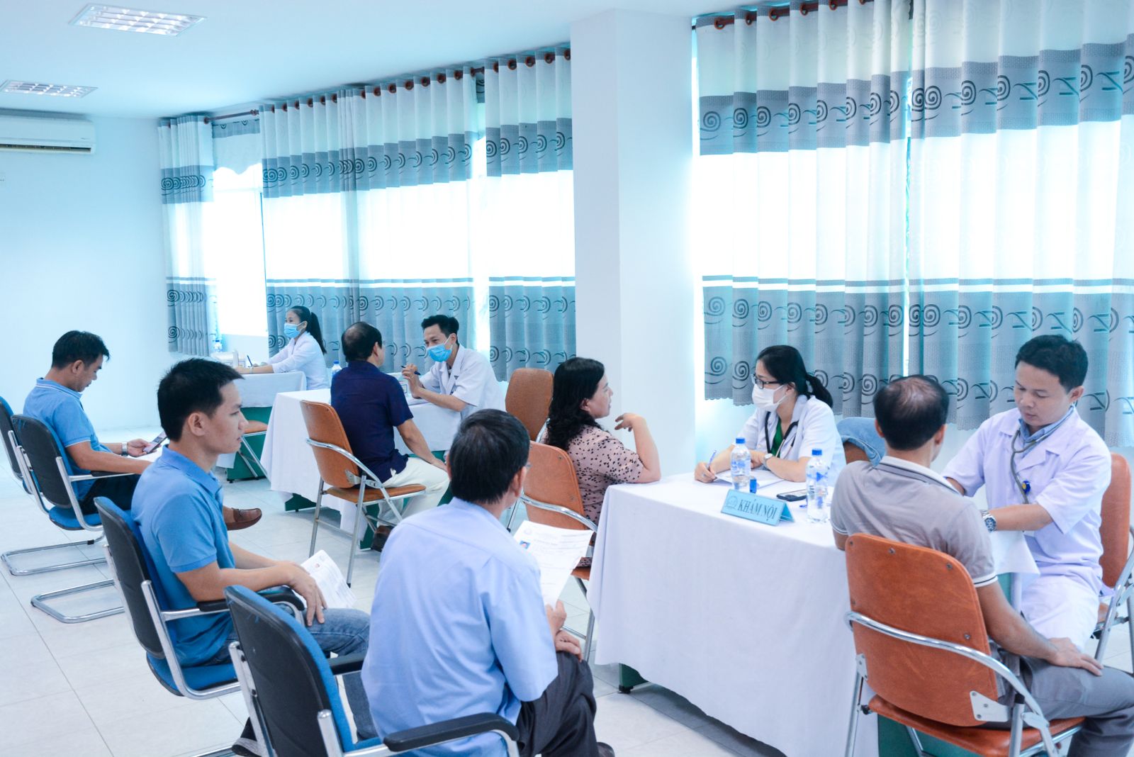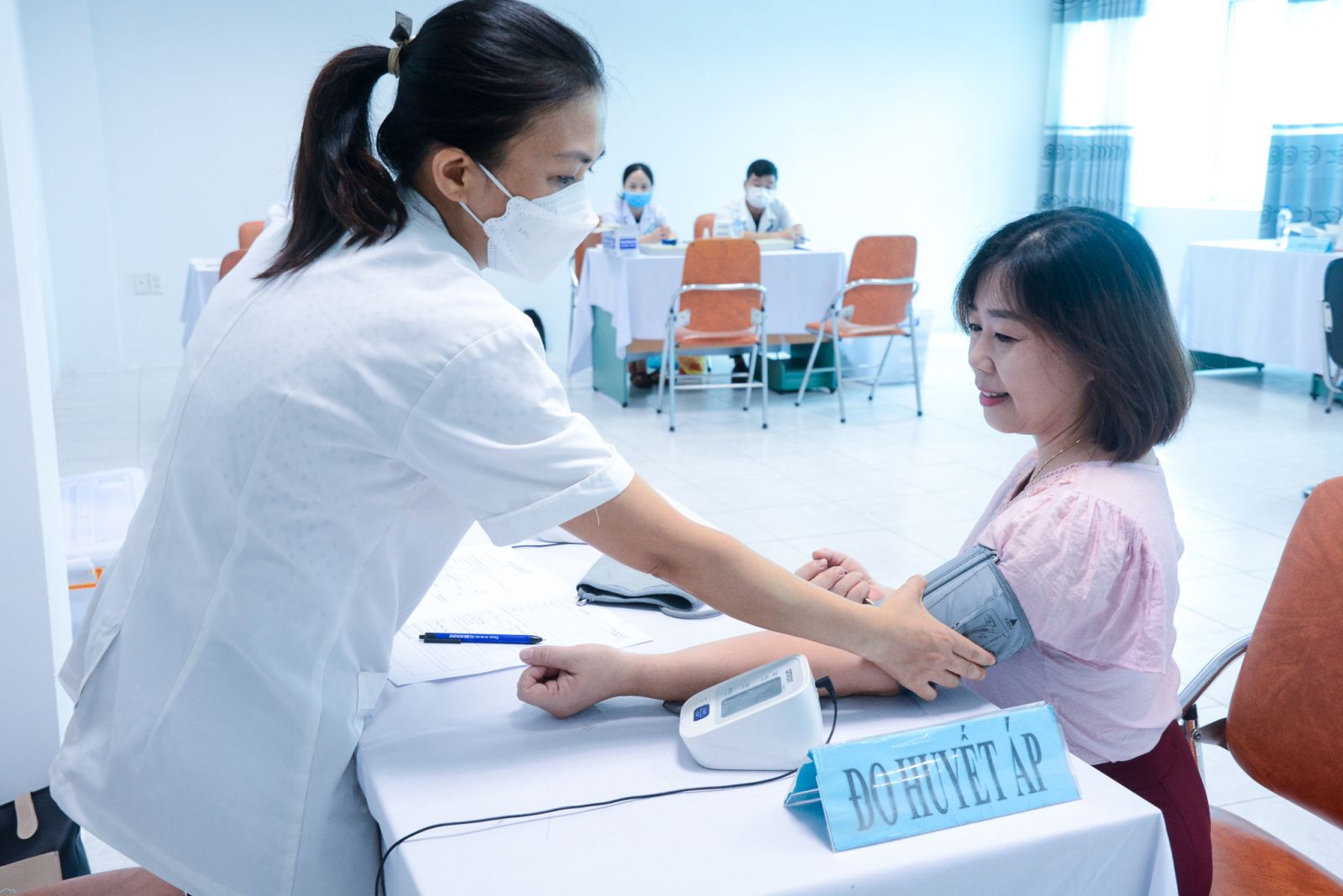 Công tác khám sức khỏe được bộ phận Y tế Nhà trường phối hợp cùng với các đơn vị liên quan chuẩn bị chu đáo, đảm bảo quá trình khám diễn ra một cách hiệu quả và chuyên nghiệp. Gần 150 cán bộ viên chức và người lao động đã thực hiện kiểm tra toàn diện các chỉ số sức khỏe, bao gồm đo huyết áp, xét nghiệm máu, kiểm tra răng hàm mặt, tai mũi họng và các cơ quan khác. Ngoài ra, các bác sĩ chuyên khoa đã thực hiện các xét nghiệm nâng cao như siêu âm, X-quang. Tất cả các hạng mục thuộc gói khám đều được lựa chọn phù hợp nhất với các cán bộ viên chức và người lao động công tác tại Trường Cao đẳng Thương mại.