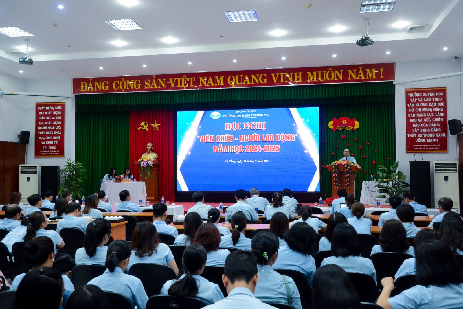 Hội nghị viên chức, người lao động Trường Cao đẳng Thương mại năm học 2024 - 2025 đã thành công tốt đẹp trong không khí đoàn kết, thống nhất của viên chức và người lao động quyết tâm thực hiện tốt phương hướng nhiệm vụ năm 2024 - 2025.