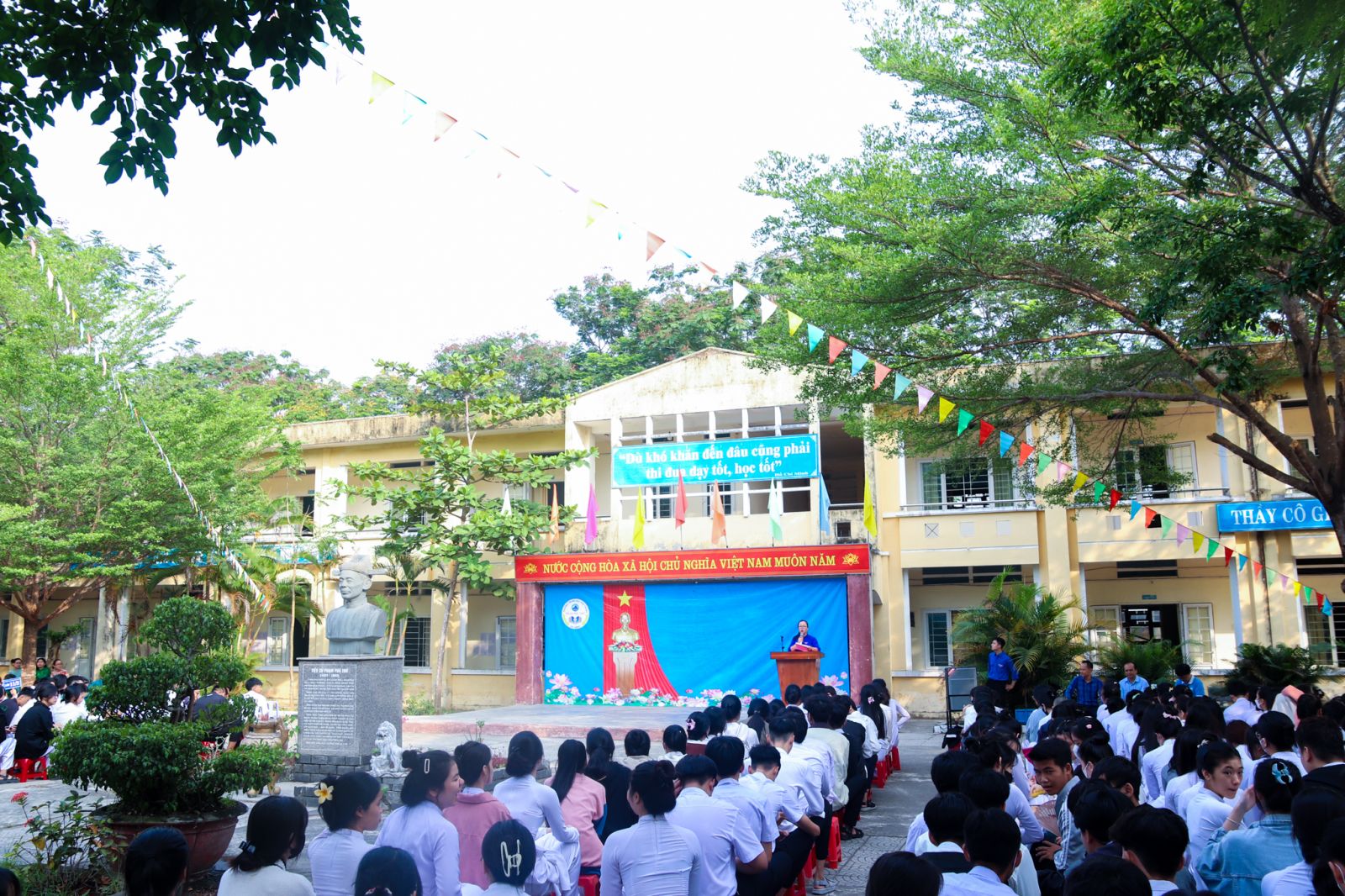 Tiếp tục hành trình chắp cánh ước mơ đến với nhiều bạn trẻ, nhất là các em học sinh các trường THPT trên địa bàn tỉnh Quảng Nam, thành phố Đà Nẵng yên tâm hơn để theo đuổi giấc mơ thay đổi số phận nhờ con chữ, ngày 13/5, Lãnh đạo Trường Cao đẳng Thương mại đã đến tham dự lễ chào cờ cuối năm học 2023-2024 và trao tặng 10 suất học bổng “COC - Chắp cánh ước mơ”, mỗi suất trị giá 500.000đ đồng cho các em học sinh có hoàn cảnh khó khăn vươn lên chăm ngoan, hiếu học của hai trường THPT Phạm Phú Thứ - Đà Nẵng và THPT Huỳnh Ngọc Huệ - Quảng Nam.